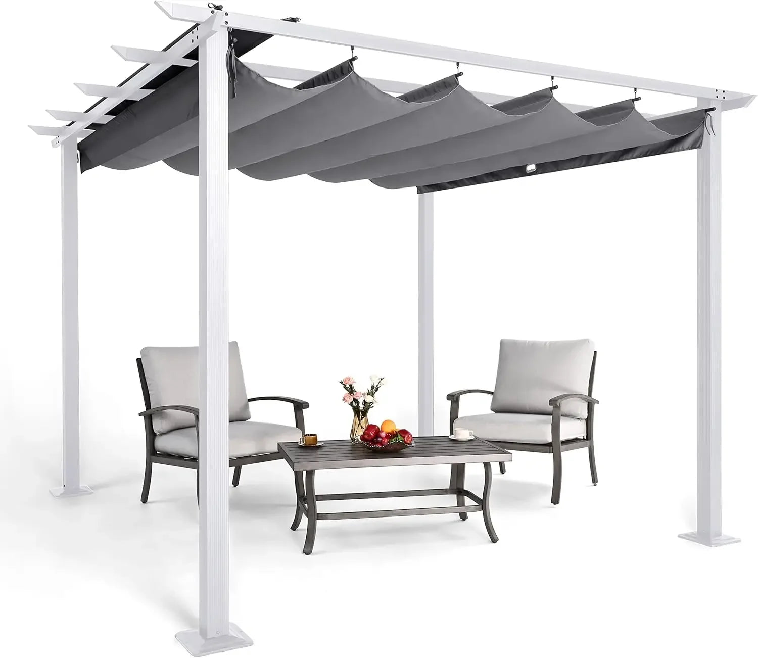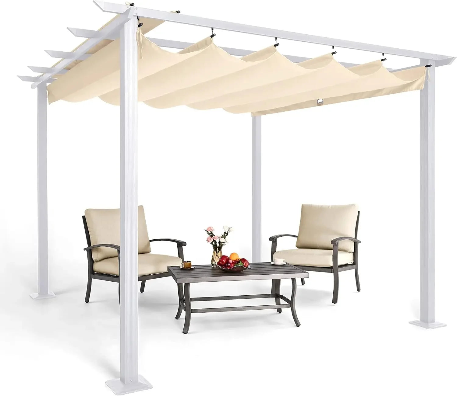 10' x 10' Retractable Pergola Canopy – White Frame & Sun Shade for Backyards, Gardens & Patios