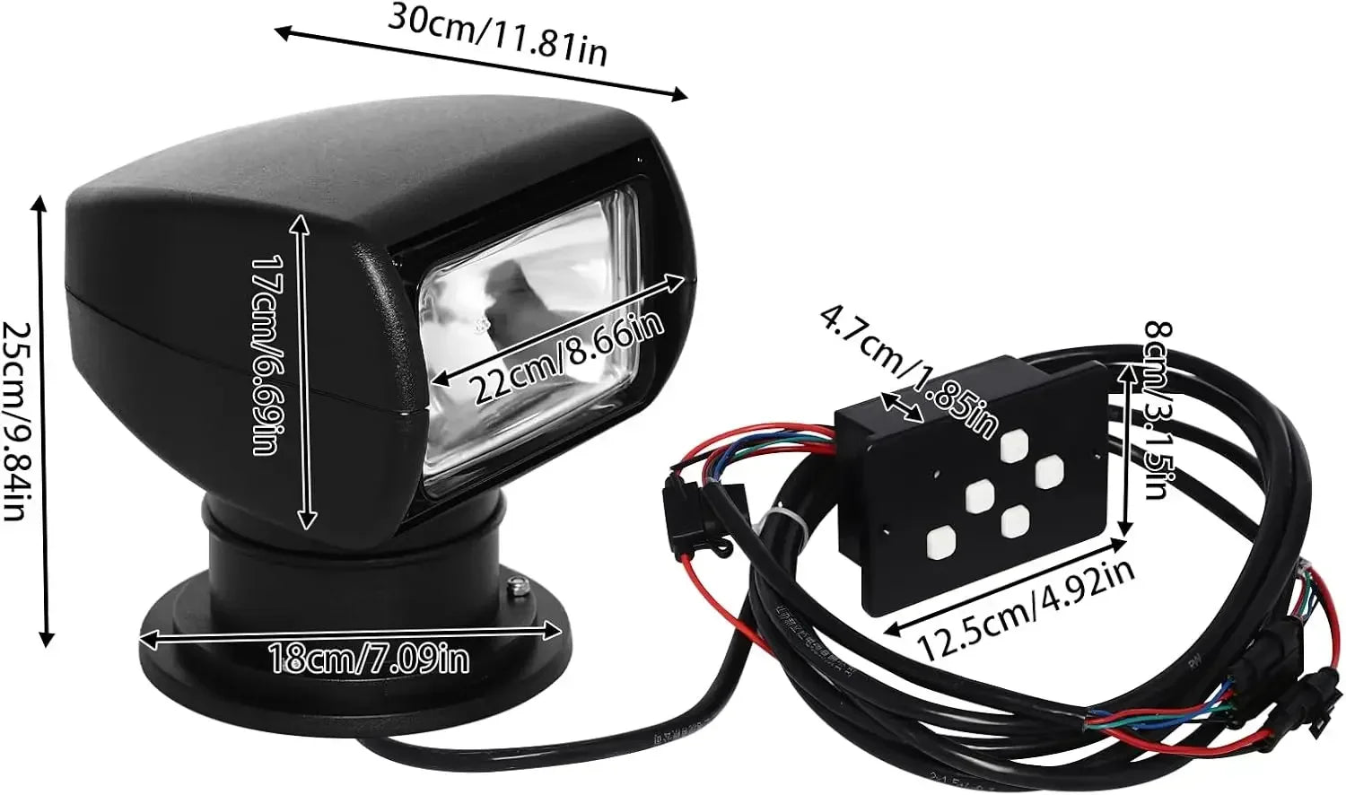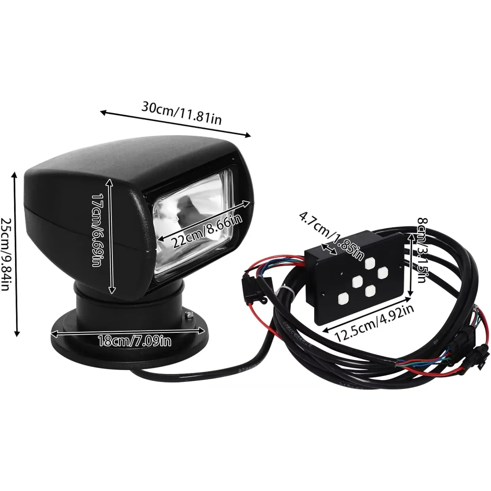 100W Marine Boat Spotlight Searchlight,360° Rotate Remote Control Marine Halogen Spotlight for Truck Car,Waterproof