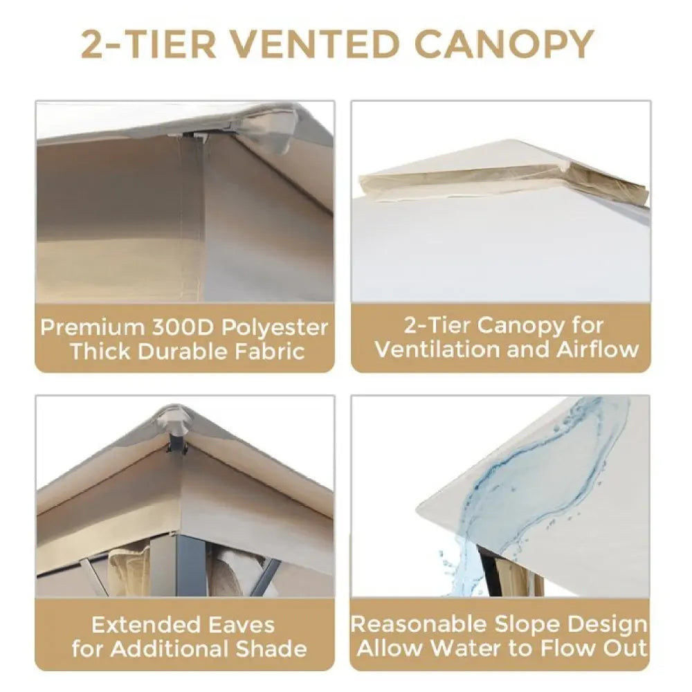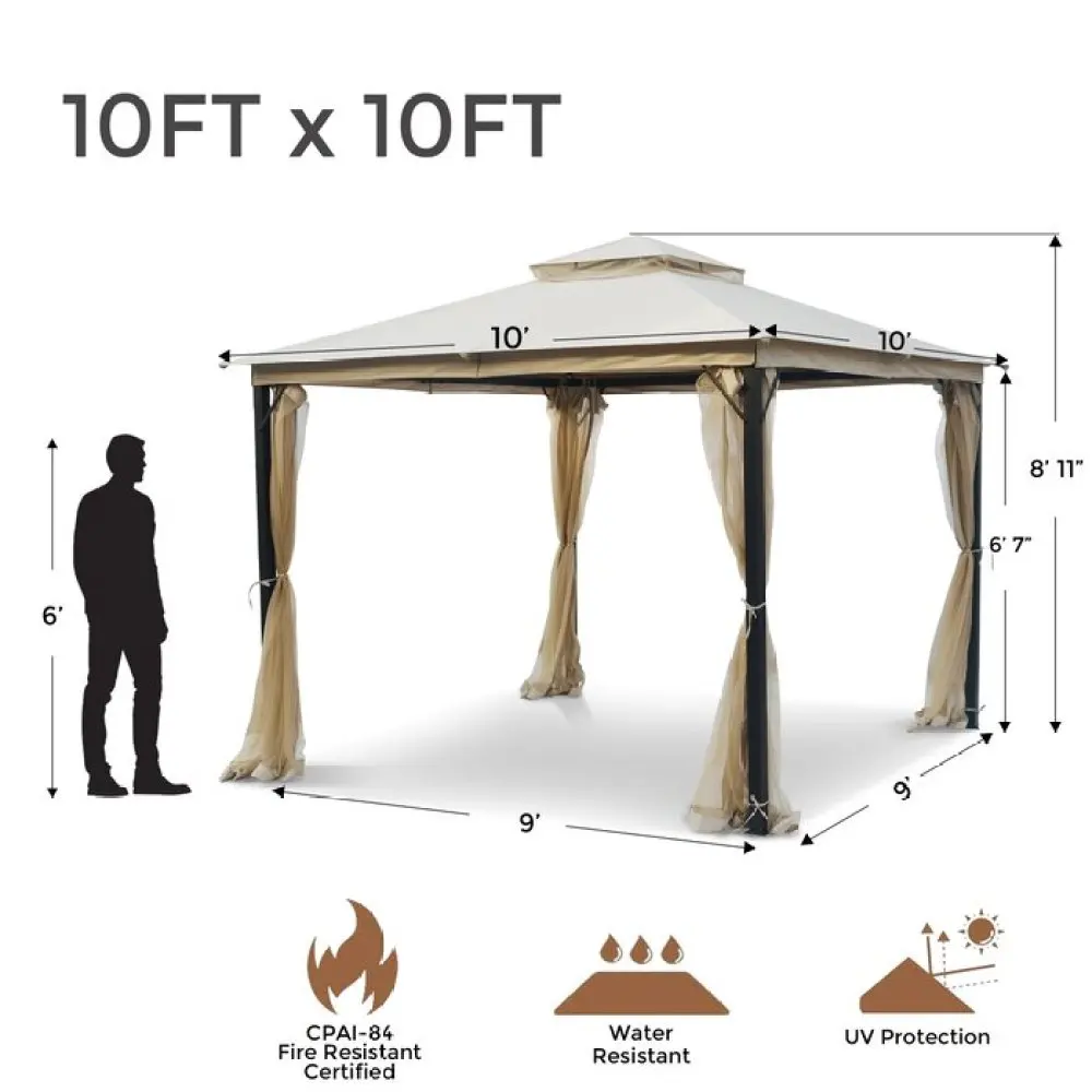 10X10FT Softtop Metal Gazebo with Mosquito Net,Sturdy Heavy Duty Double Roof Canopy,Galvanized Steel Design Outdoor Tent