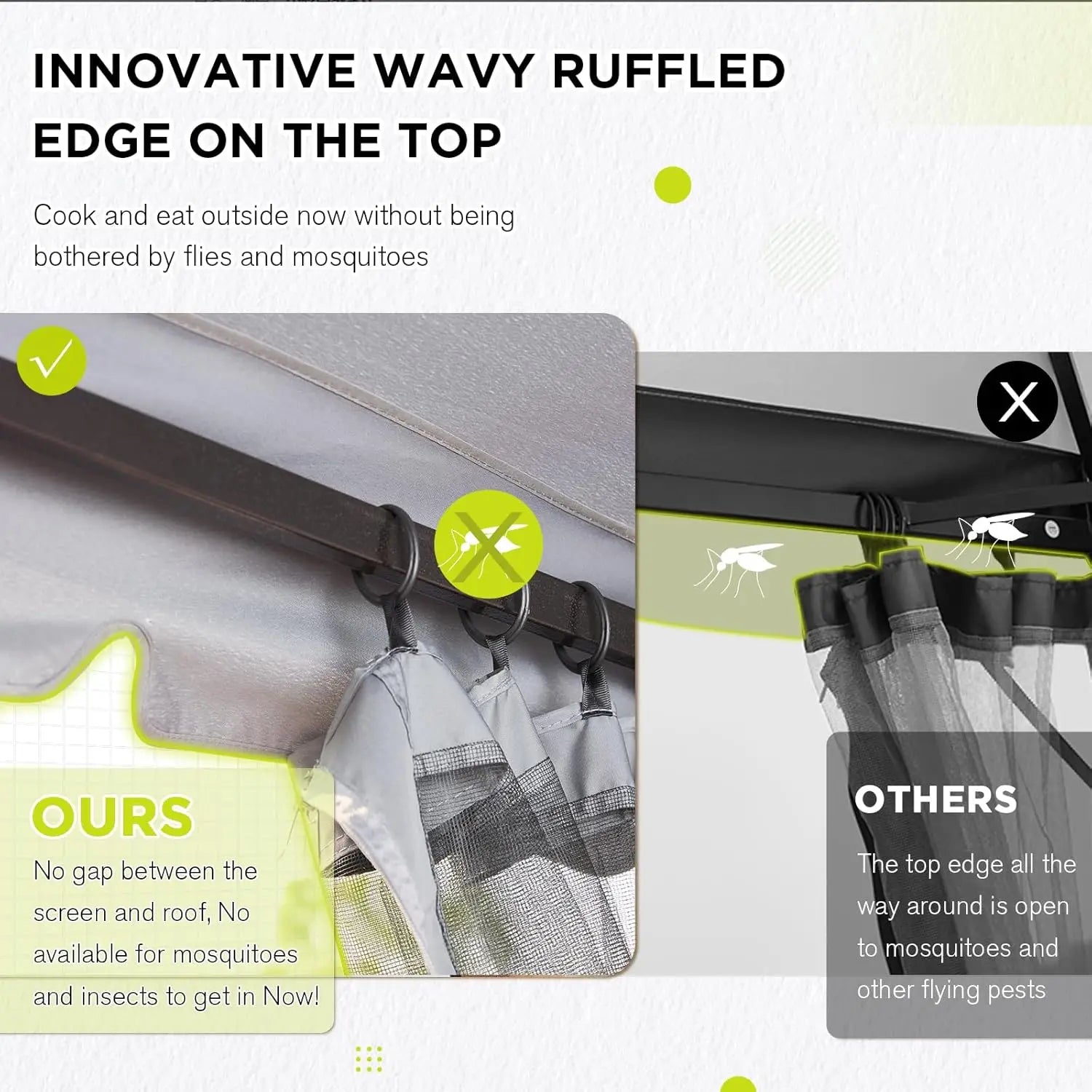 10x12 Gazebo with Mosquito Netting,Sturdy Metal Outdoor Patio Gazebo[Heavy Duty Frame],Gazebos Canopy Tent with Dual Air Roof