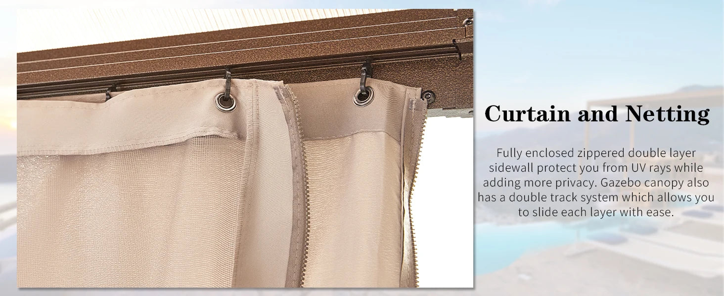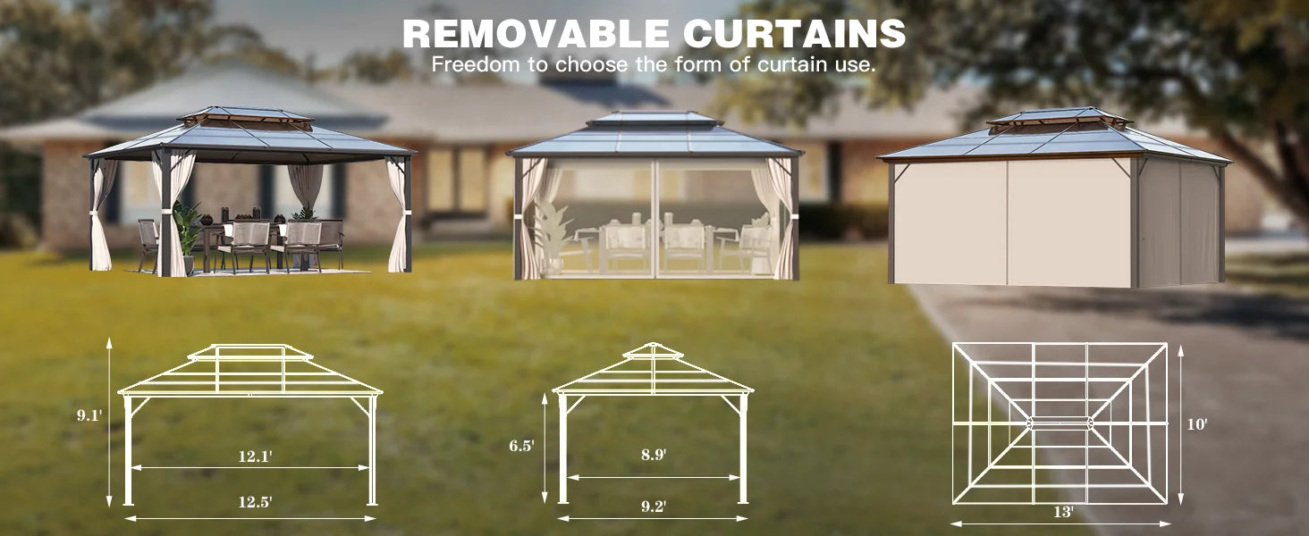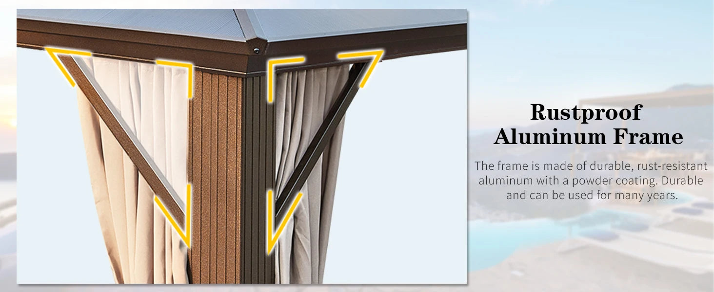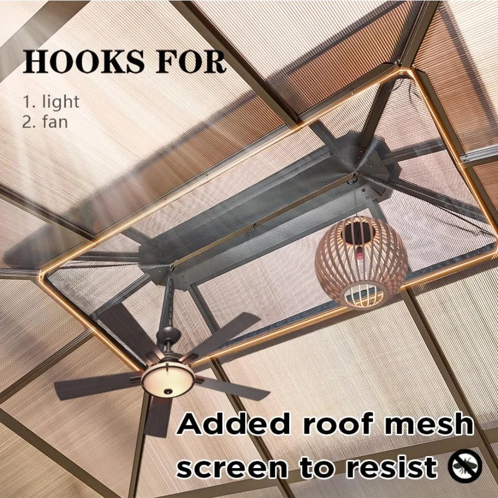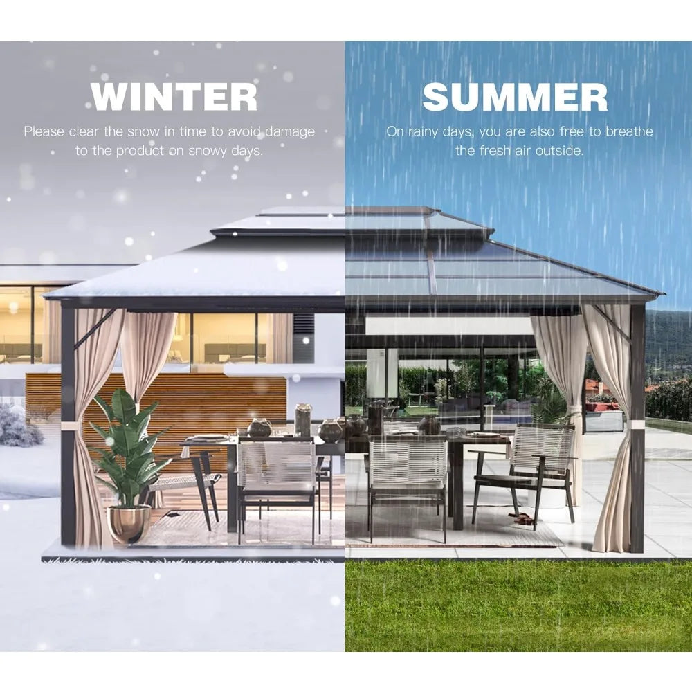10'x13' Hardtop Gazebo, Outdoor Polycarbonate Double Roof Canopy, Aluminum Frame Permanent Pavilion, Sunshade