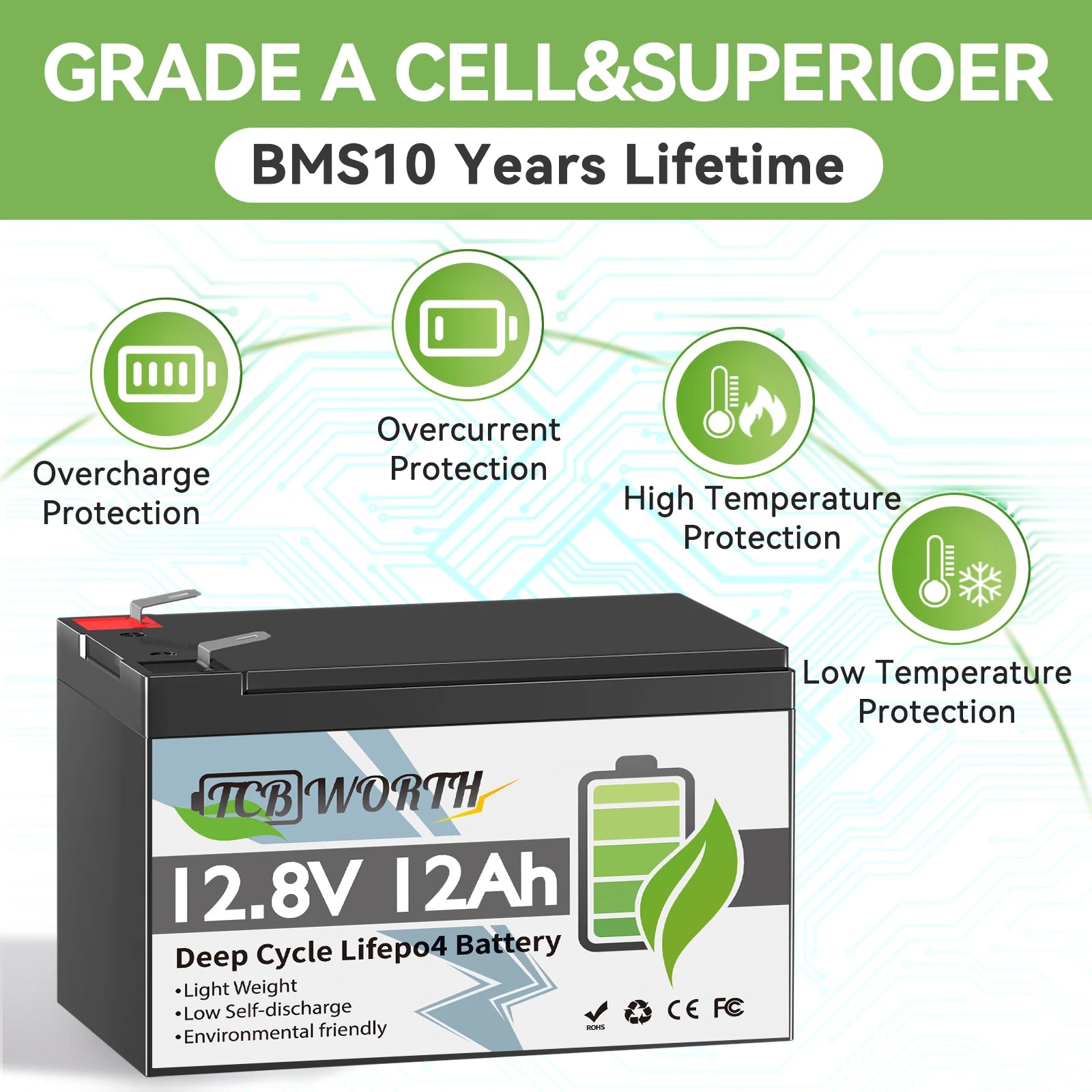12V 12Ah LiFePO4 Battery,4000+ Deep Cycles,Lithium Iron Phosphate Battery,Built-in BMS,for Power Wheels,Fish Finder,Ride-on Toy