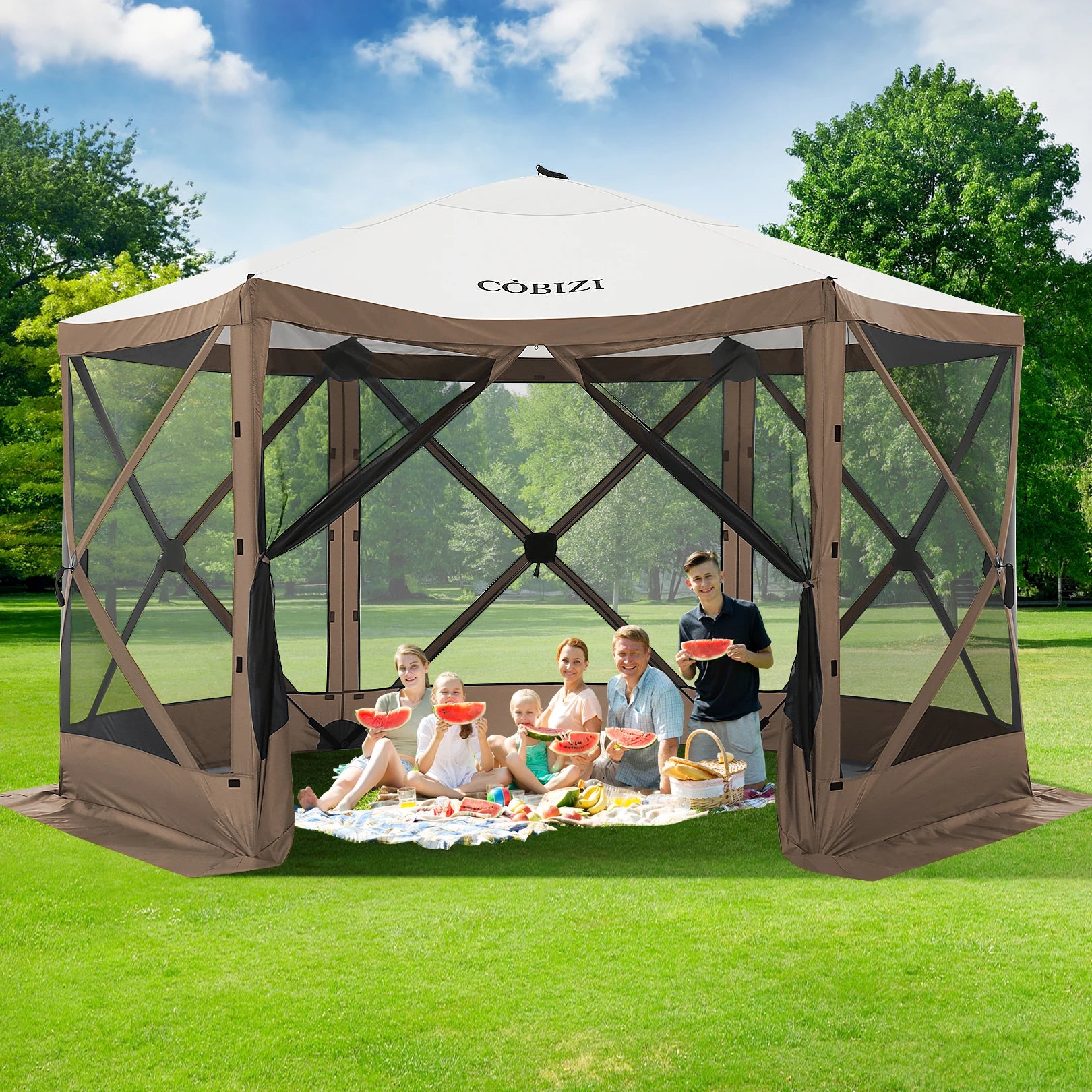 12x12ft Pop up Gazebo Screen House Tent with Mosquito Netting, 6 Sided Pop-up Canopy Shelter Tent Easy-Set Portable Gazebo