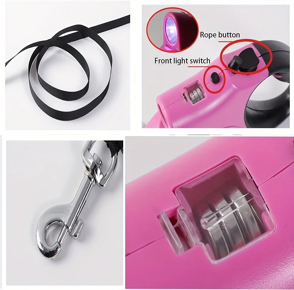 16FT Retractable Dog Leash with Reflective Strip - Night Safety Rope Lead for Small Medium Dogs, Tangle-Free & Durable