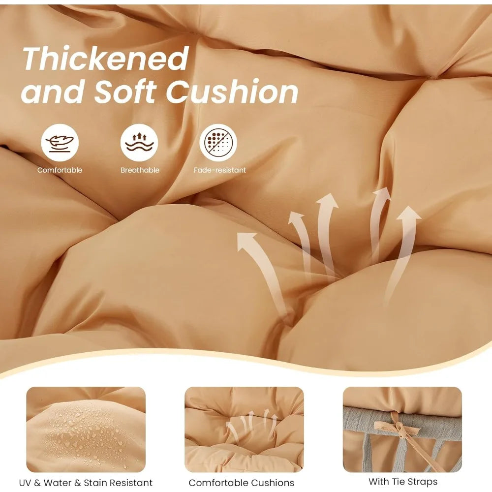 2-Person Outdoor Porch Swing with Adjustable Hardtop Canopy, 5.9" Thick Cushions,Weather-Resistant Rattan Patio Swing Chair with