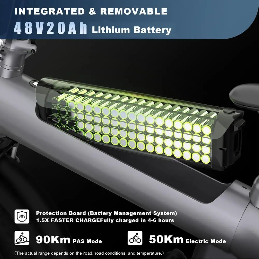 20“ Electric Bike for Adults with Removable Battery, Peak 2000W Brushless Motor, 24-62 Miles, 35 MPH Ebike for Adults