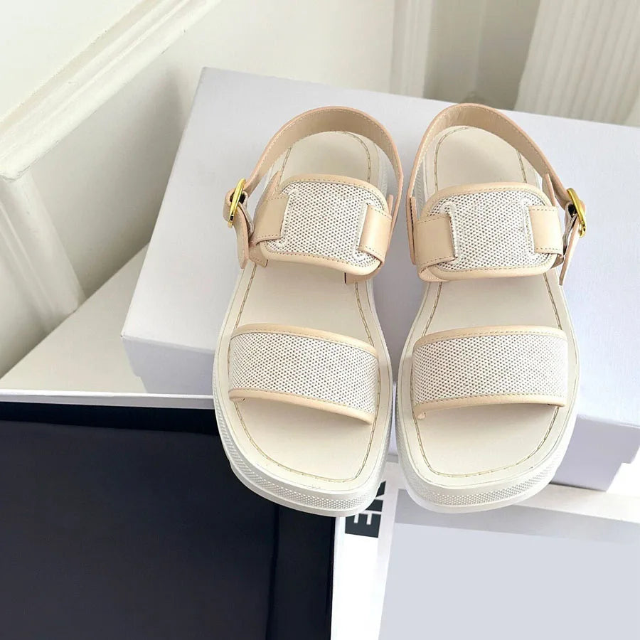 23SS Top Quality Brown Casual Gladiator Platform Heel Sandals Dress Shoes Real Leather Ankle Strap Buckle Luxury Designer Flat