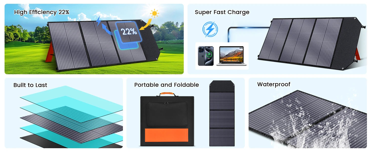 2400W /1600W / 500W Portable Power Station, 2048Wh / 1024Wh /345Wh Lifepo4 Battery with 400W / 200W / 100W Foldable Solar Panel