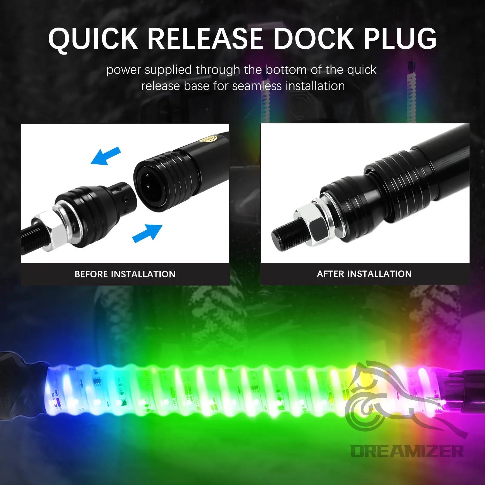 2PCS 2ft LED Whip Lights For UTV Colorful RGB Chasing/Dancing Light RGB Chasing Lighted Antenna Whips For ATV Truck