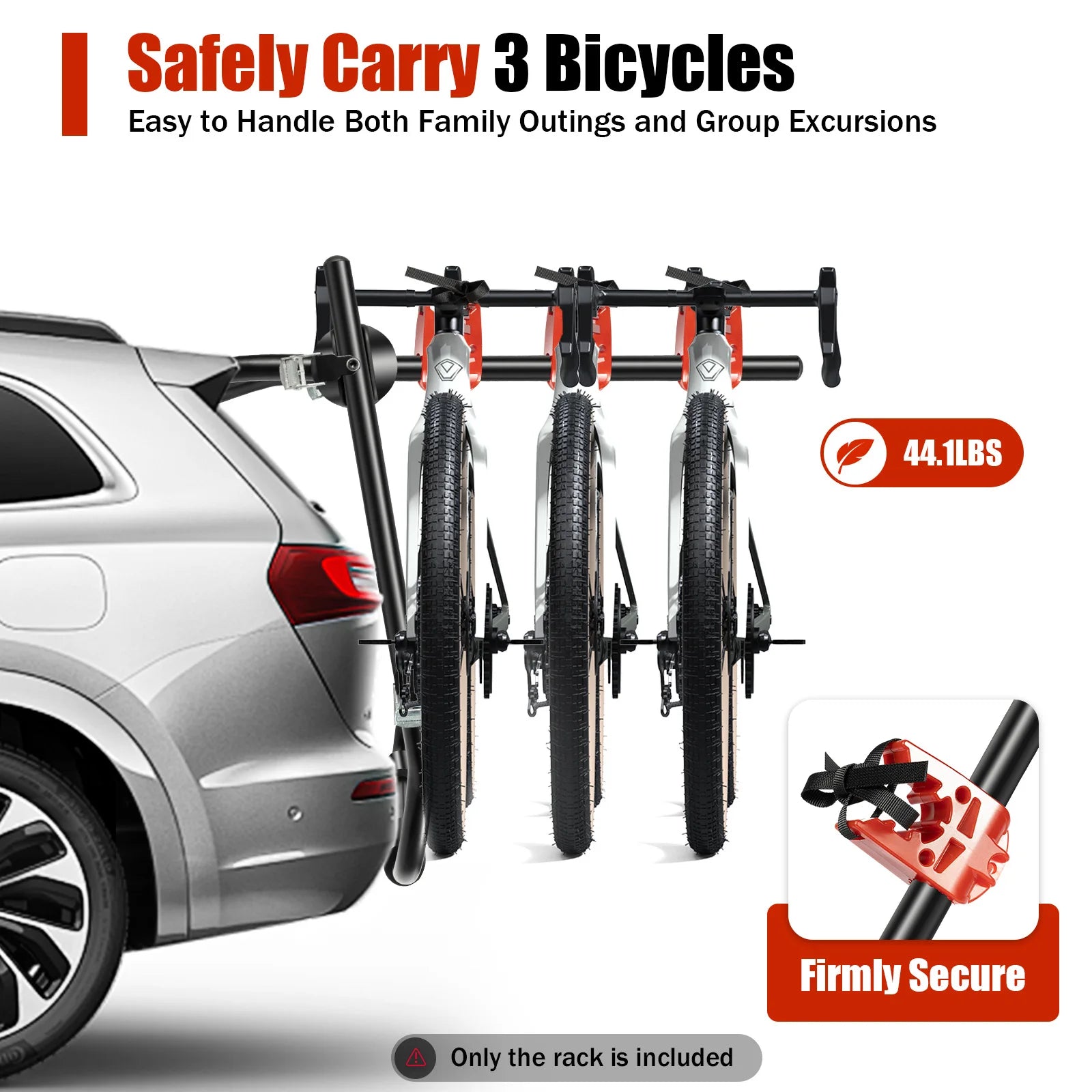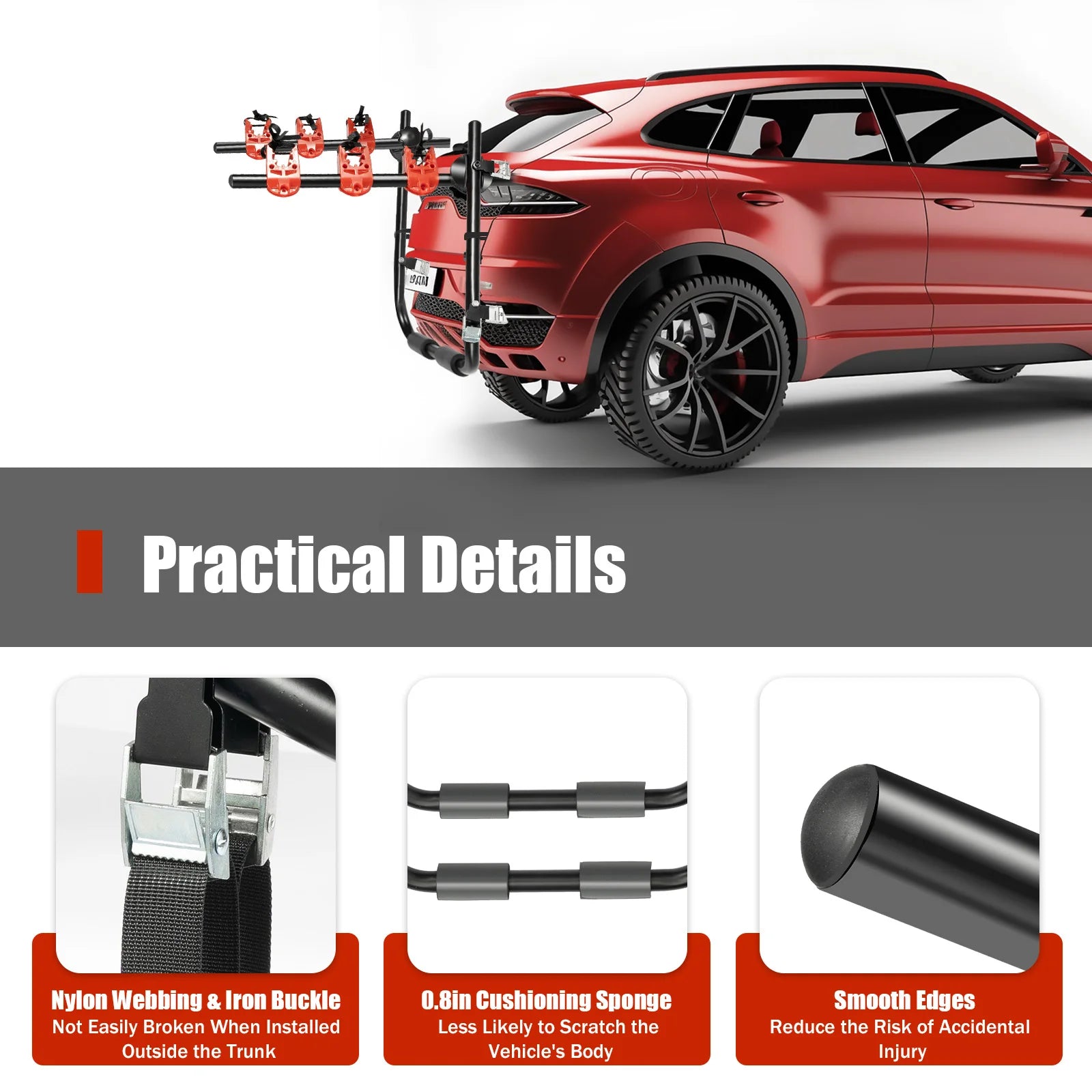 3-Bike Trunk Mount Rack Support 20Kg Load Heavy-Duty Car Rear Bike Rack Compatible with Trunks, SUVs, Minivans.