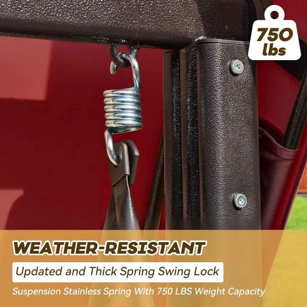 3 in 1 Outdoor Porch Swing with Adjustable Canopy, 3 Seat Outdoor Swing for Adults, Patio Swing Chair with Thickened Cushions,Pi