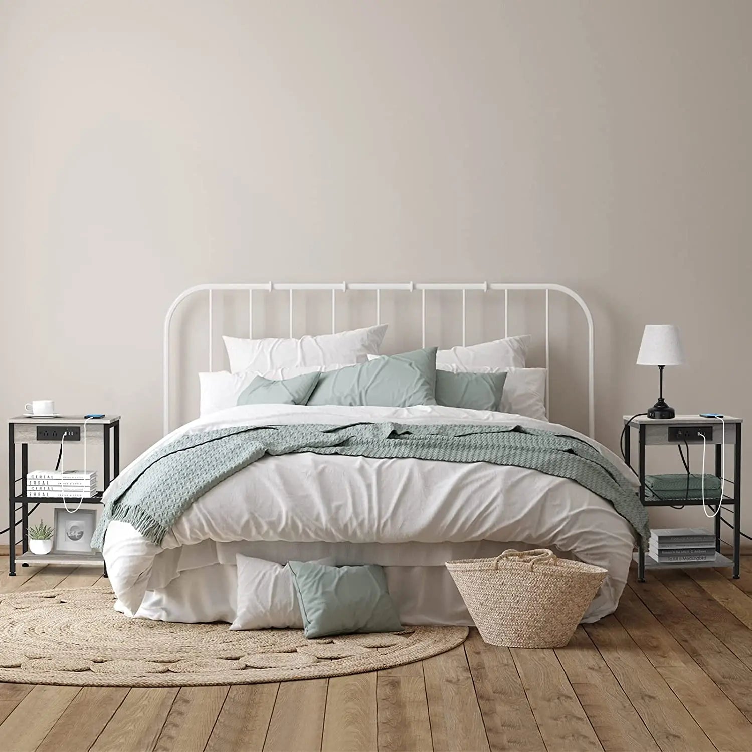 End Table with Charging Station - Equipped with two standard outlets and three USB ports on this bedroom end table’s side board. While you're lounging on the couch playing with your phone, watching a movie or working, a night stand table with USB ports is ready to provide you with charging support.