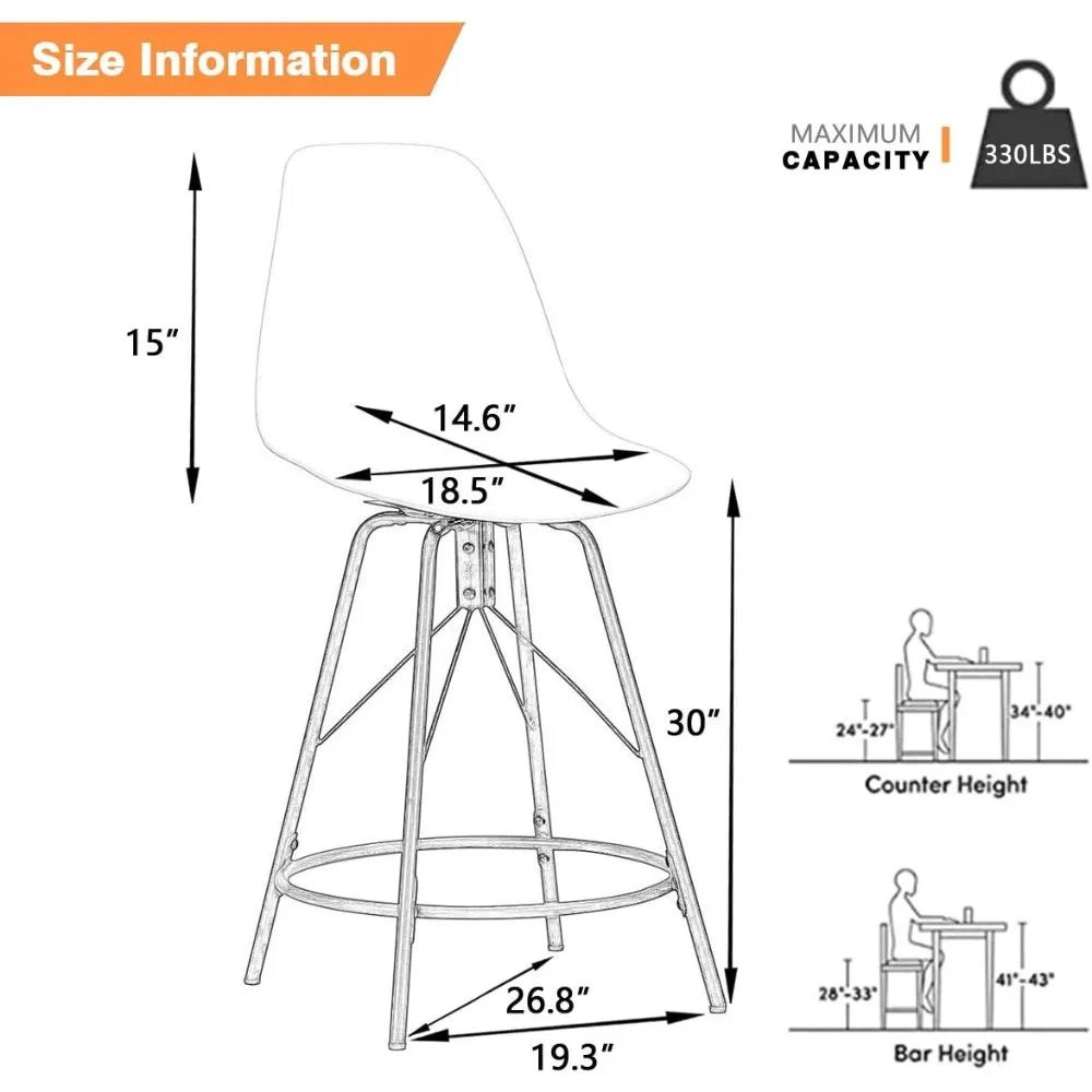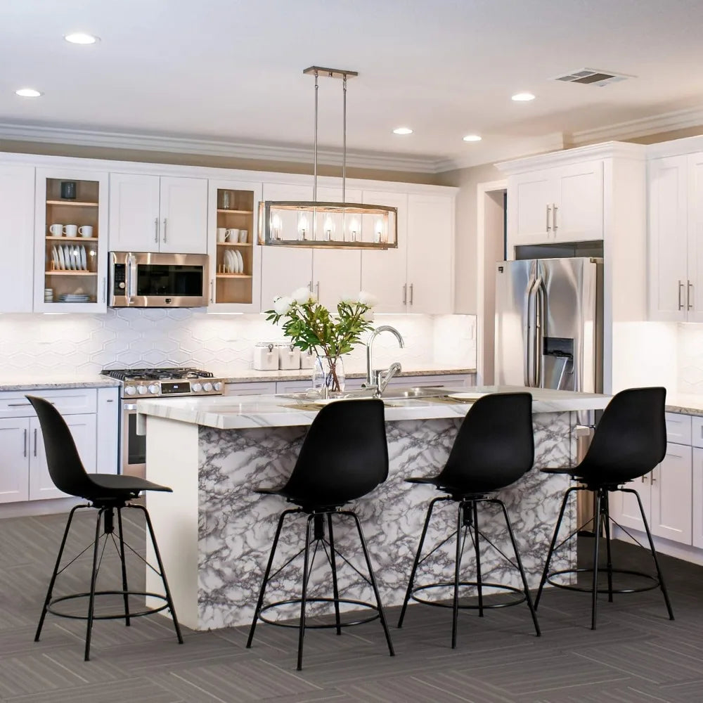 30" Swivel Bar Stools with Backs Set of 4 Black Plastic Bar Height Stools Hight Back Bar Chairs with Metal Legs Protector