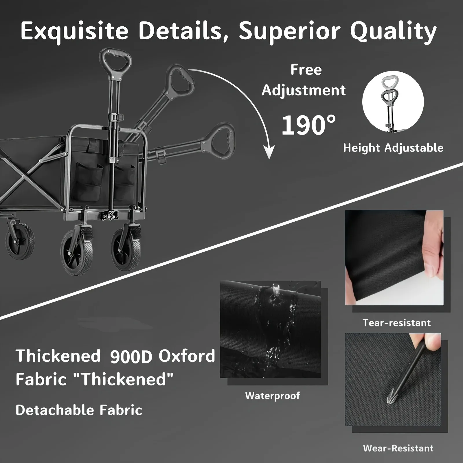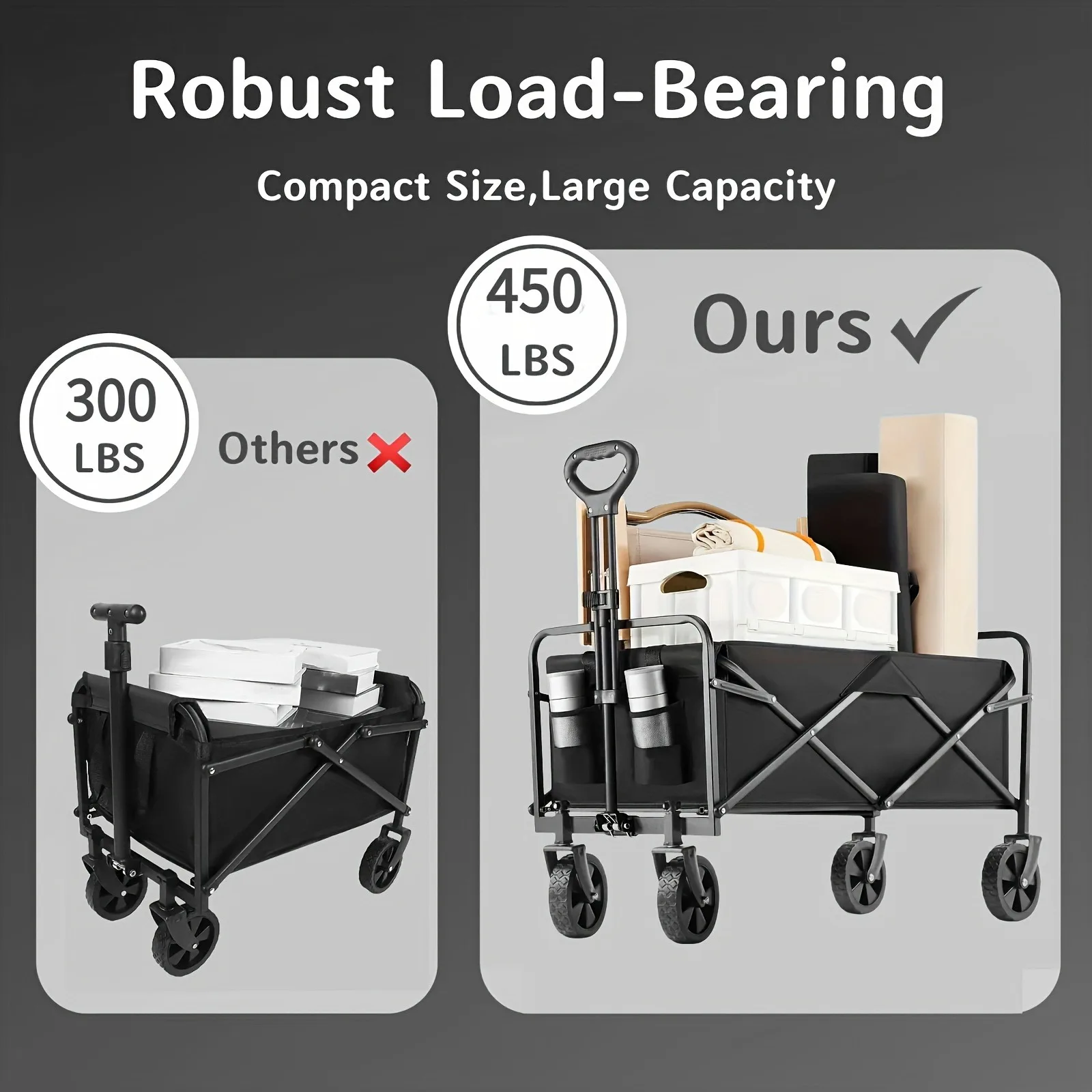 450 lbs Folding Trolley, Heavy Duty Utility Portable Foldable Outdoor Beach Field Trolley with 360° All Terrain Wheels, Side Bag