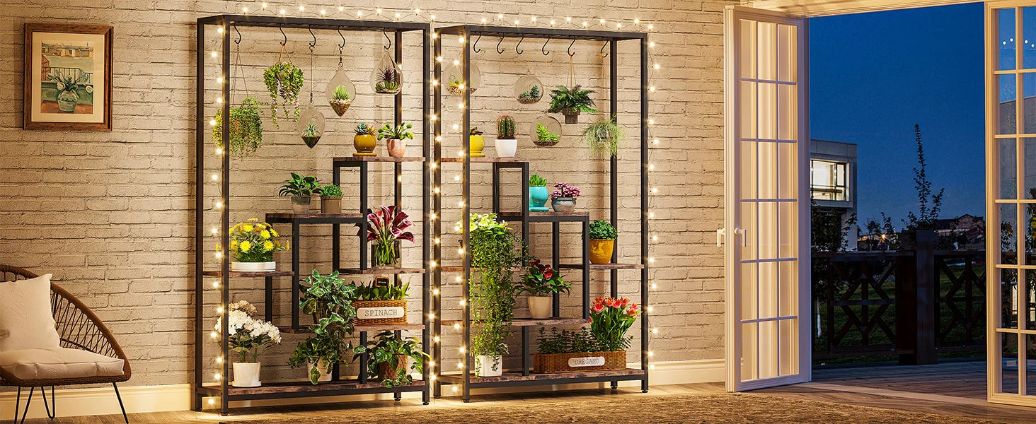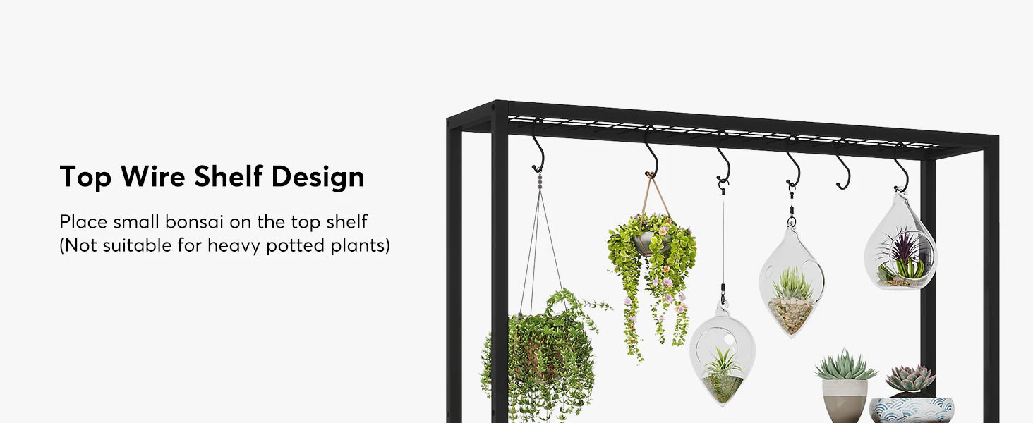 5-Tier Tall Indoor Plant Stand, 70.9 inches Large Metal Plant Shelf with 6PC S Hanging Hooks for Indoor, Garden