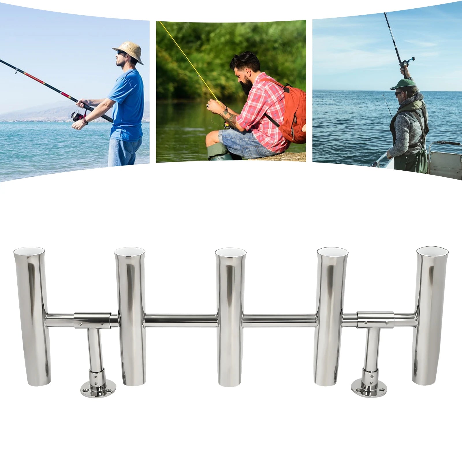 5-Tube Fishing Rod Holder Deck Mount Adjustable Fishing Rod Holder Bracket Stainless Steel Boat Fishing Rod Pod