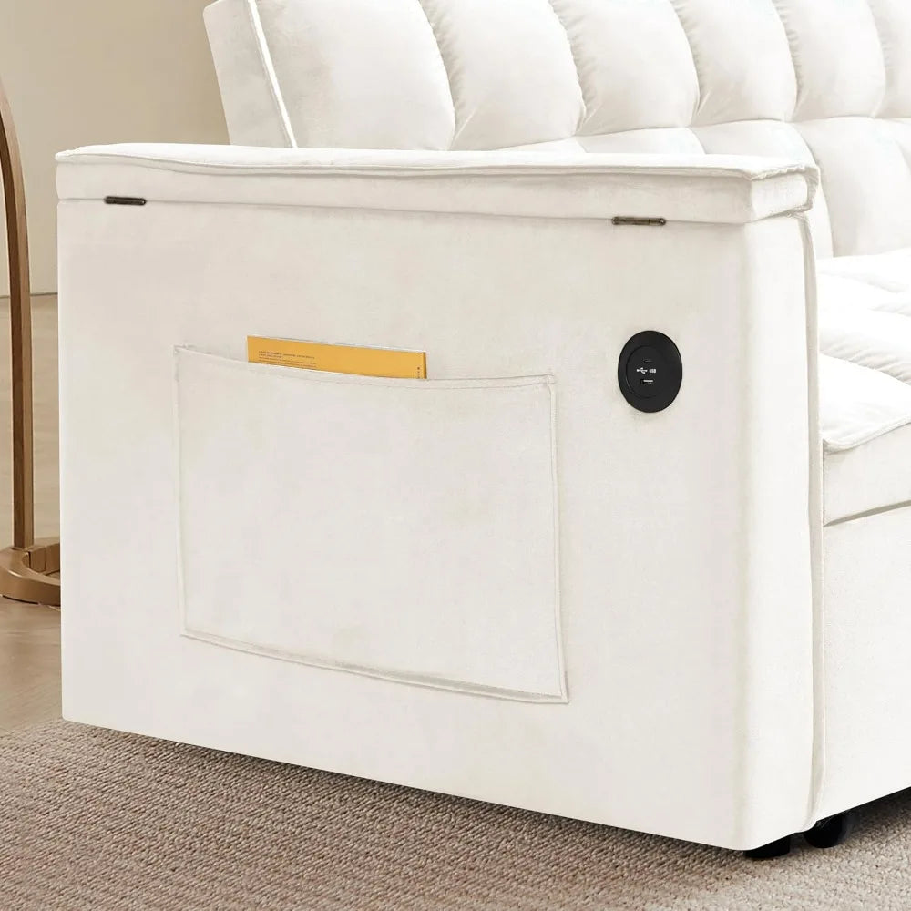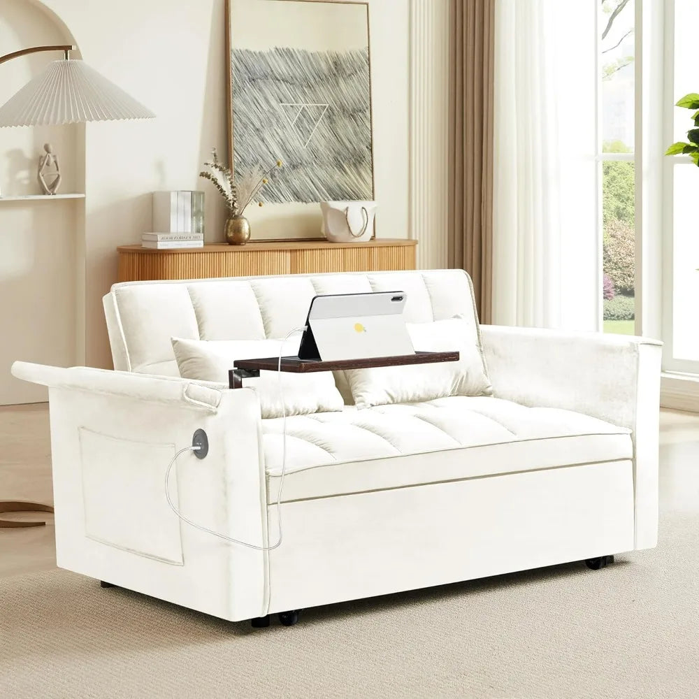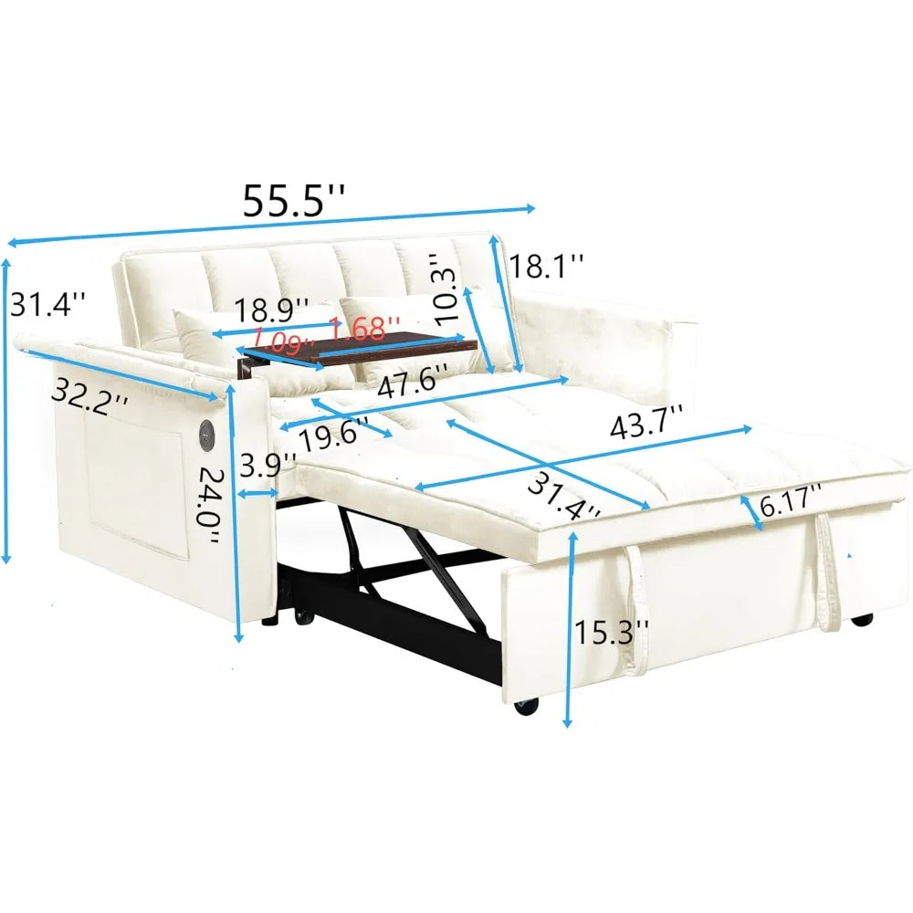 55 Velvet Sleeper Sofa Bed with 3-in-1 Functionality, Pull Out Couch, Adjustable Back, and 2 Pillows - Convertible Futon Sofa