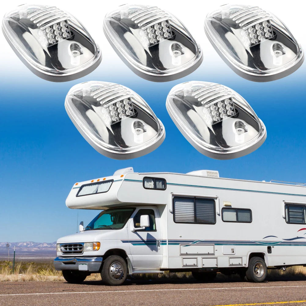 5Pcs Amber 9 LED Top Clearance Running Light 12V/24V Cab Roof Top Marker Running Light IP68 Waterproof for Pickup Trucks SUV