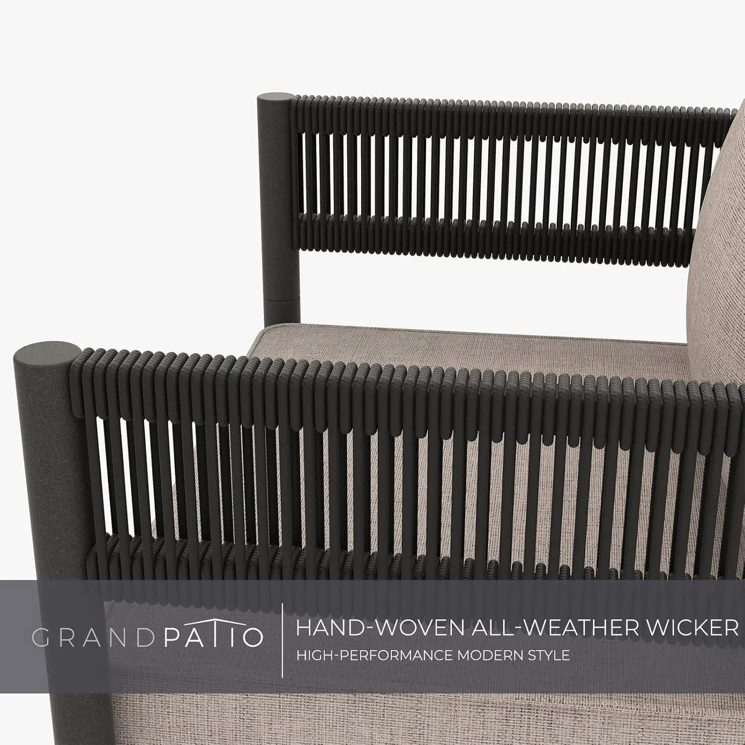 6-Piece Wicker Outdoor Furniture Set with Beige Thick Cushions and Coffee Table, Patio Sofa Conversation Set