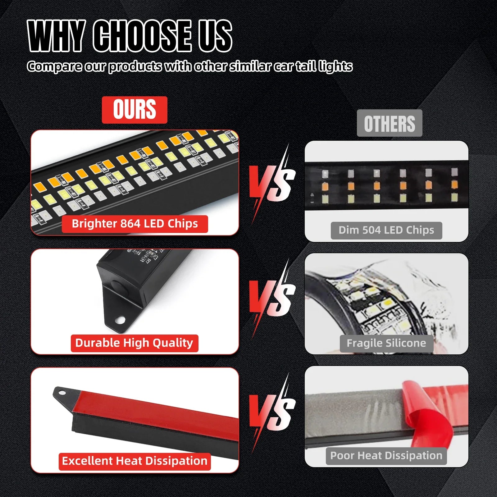 60" Tailgate LED Strip Bar Brake Turn Signal Tail Light LED Tailgate Light Bar Brake Backup Running Strip Led Lights