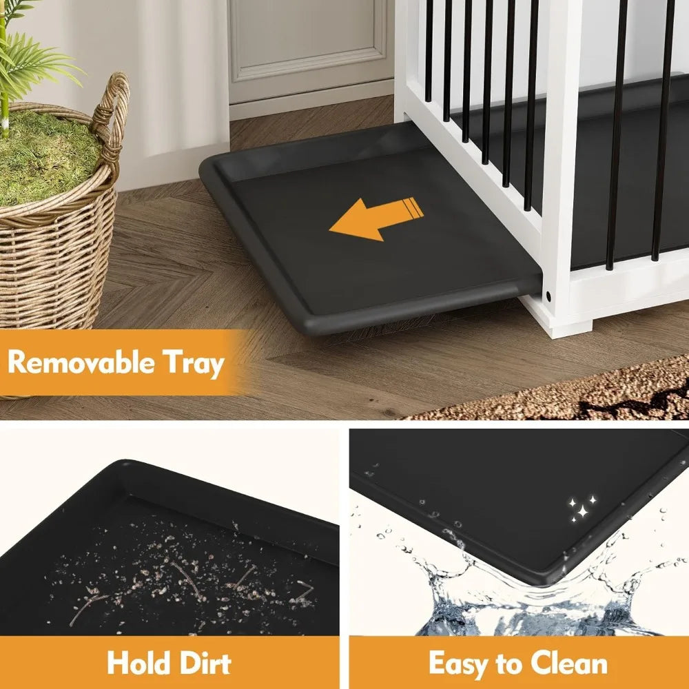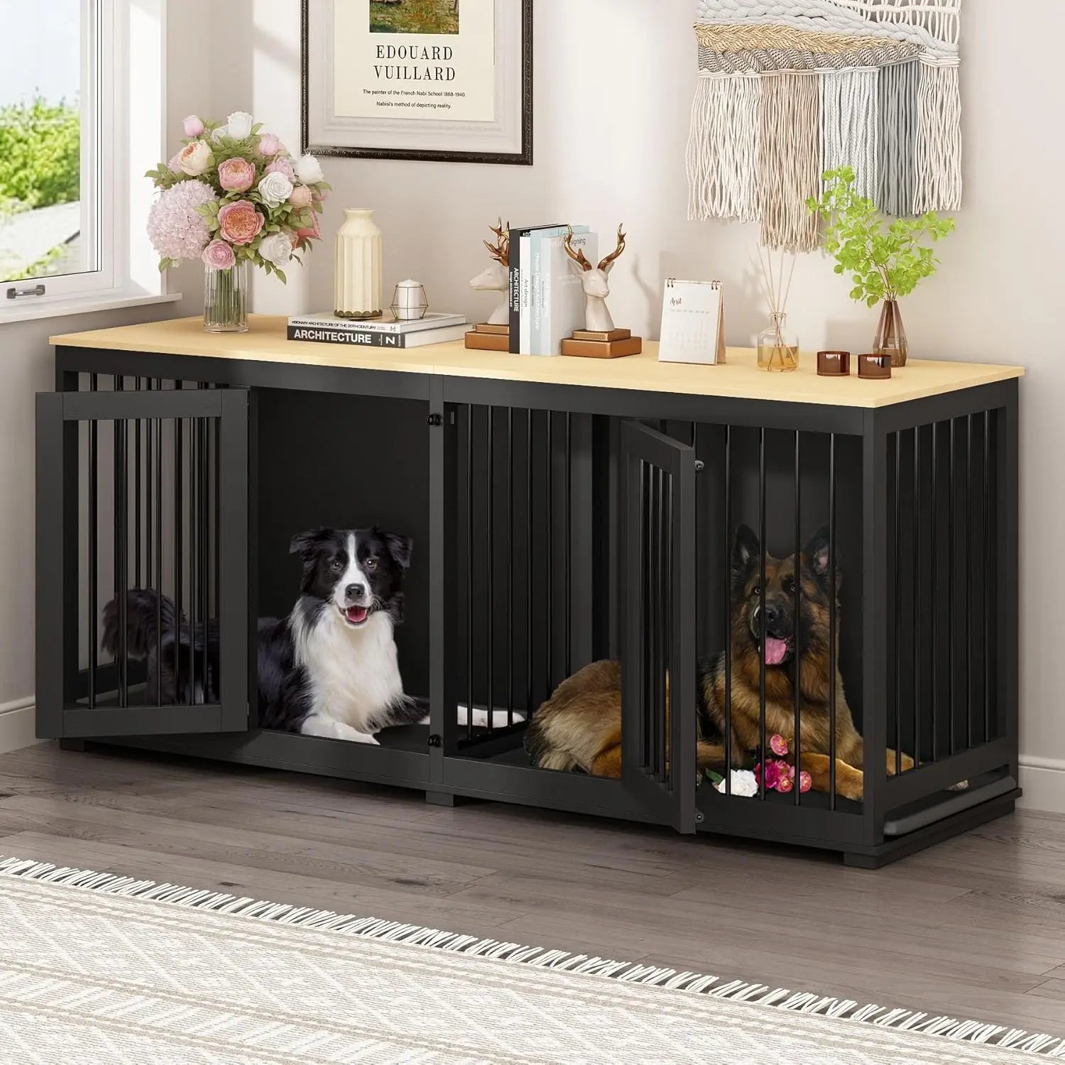 70.9" Large Double Dog Crate Furniture, Wooden Dog Kennel House with Divider & 2 Trays, for Large or 2 Medium Breeds Indoor