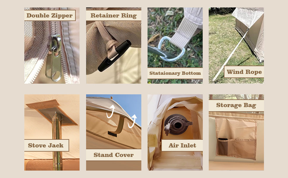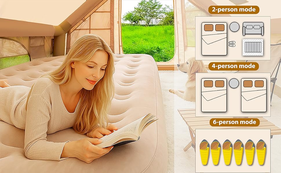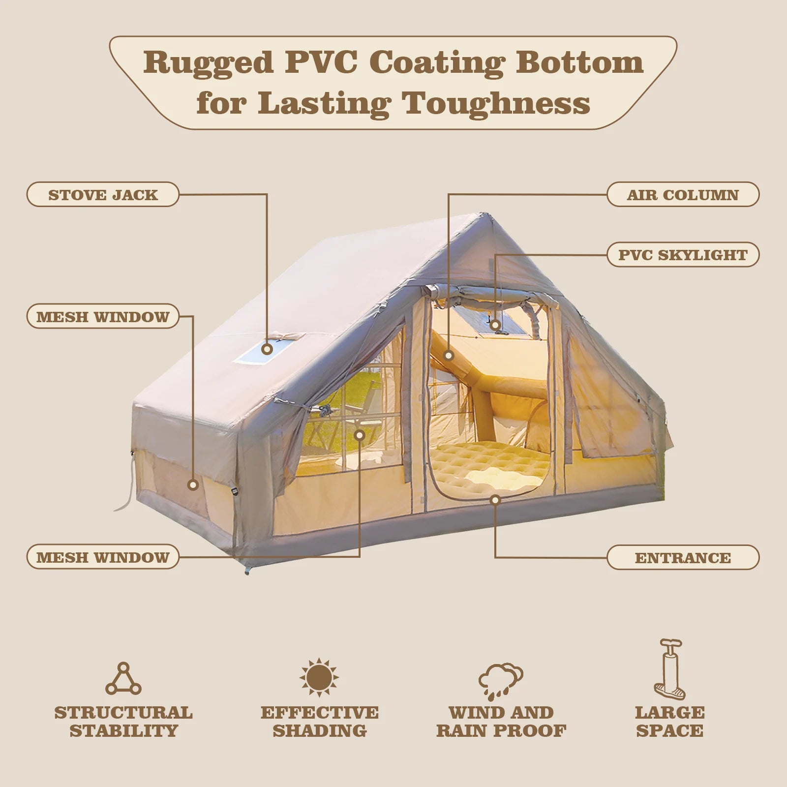 9.8' x 7' Inflatable Camping Tent,4 Season Blow up Tents for Camping, 4-6 Person Inflatable Tent with Jack Stove