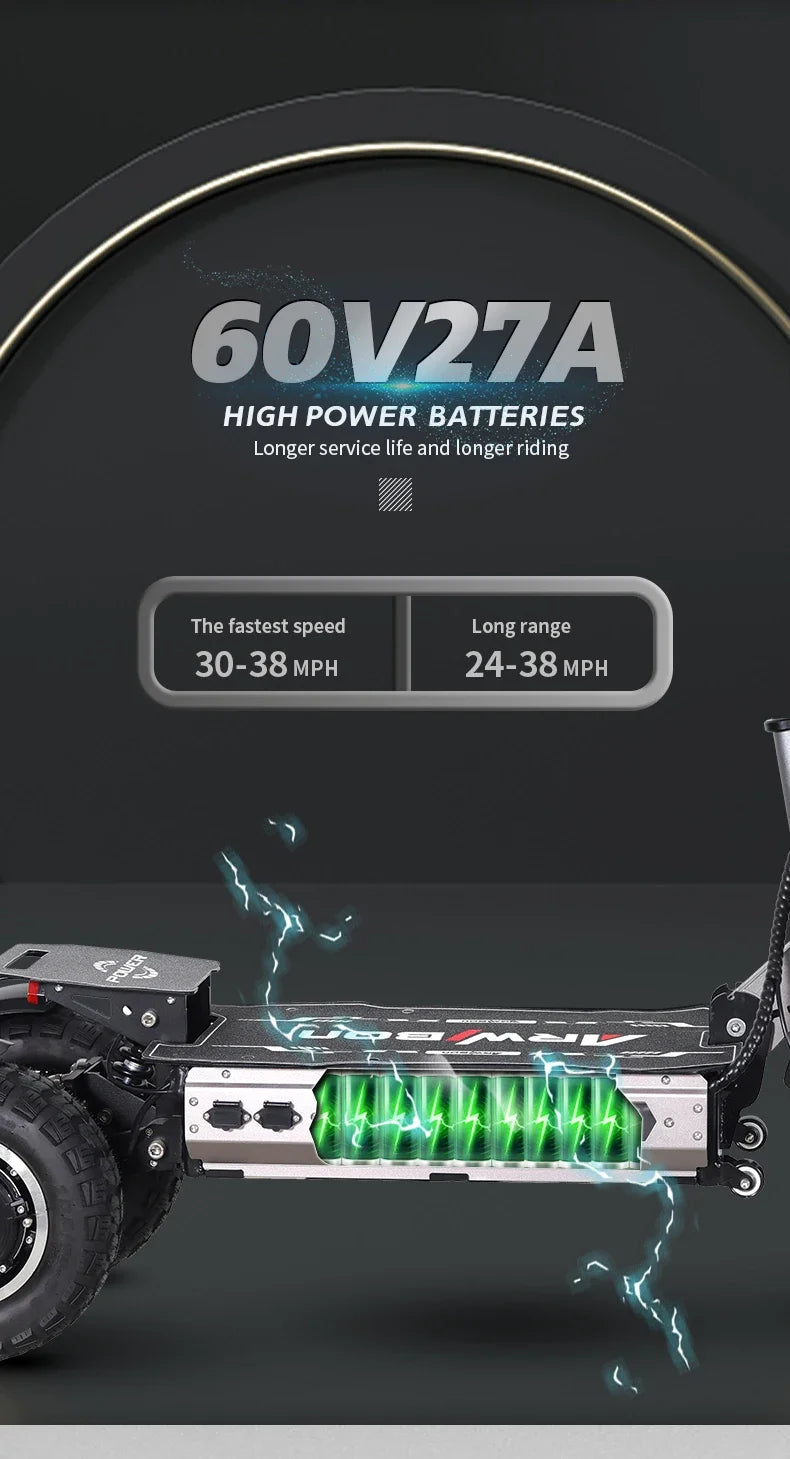 ARWIBON MT30 Adult Electric Scooter 6000W Motor 60V27AH Folding Tricycle E-Scooter 13 Fat Tire E-Mountain Scooter