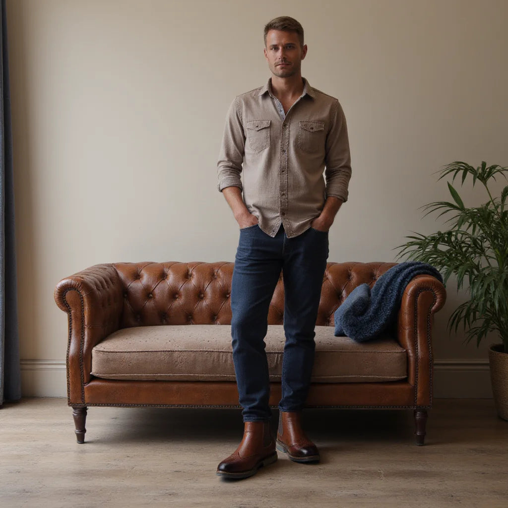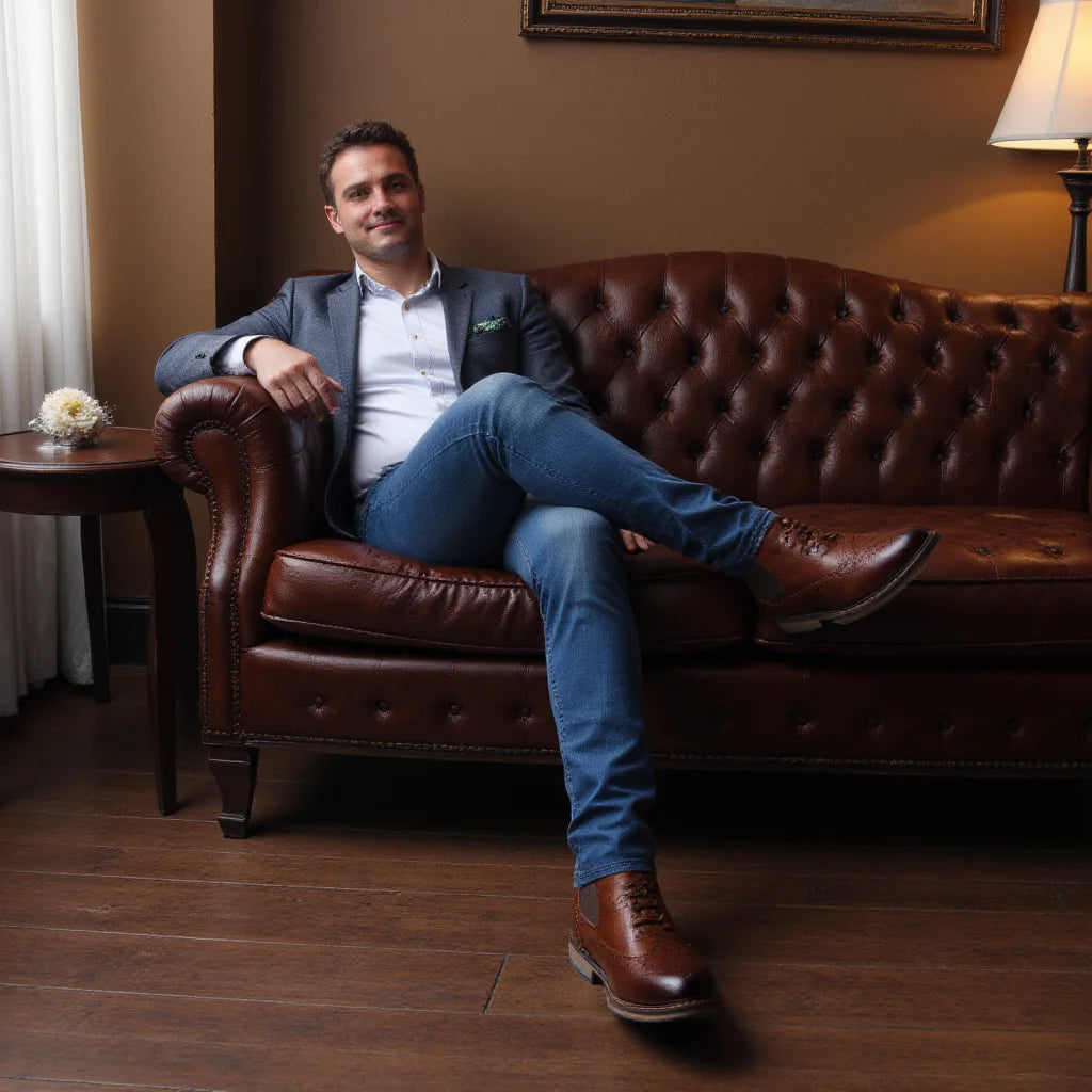 Classical Brogue Chelsea Men Boots Comfortable Fashion Leather Boots