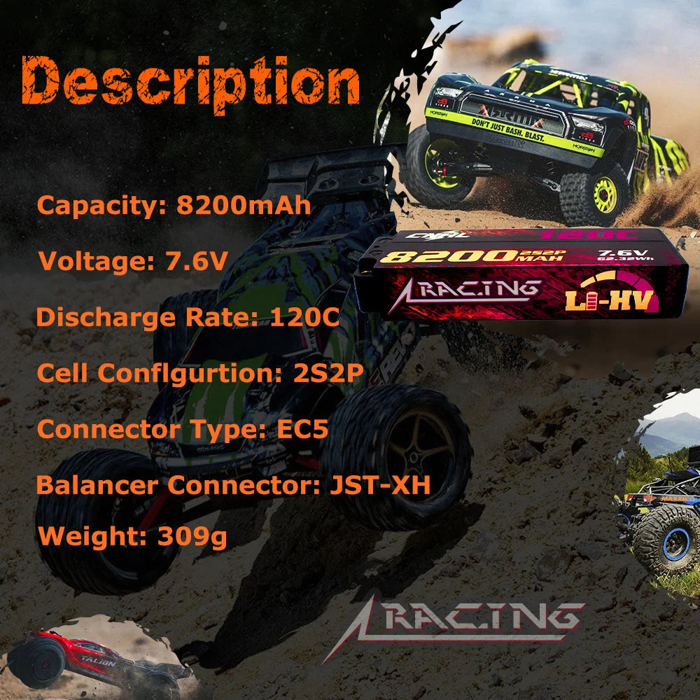 CNHL 2S 3S 4S Lipo Battery 7.6V 11.4V 15.2V 8200mAh 120C HV HardCase With EC5 Plug For RC Car Boat Airplane Truck Vehicle Truggy