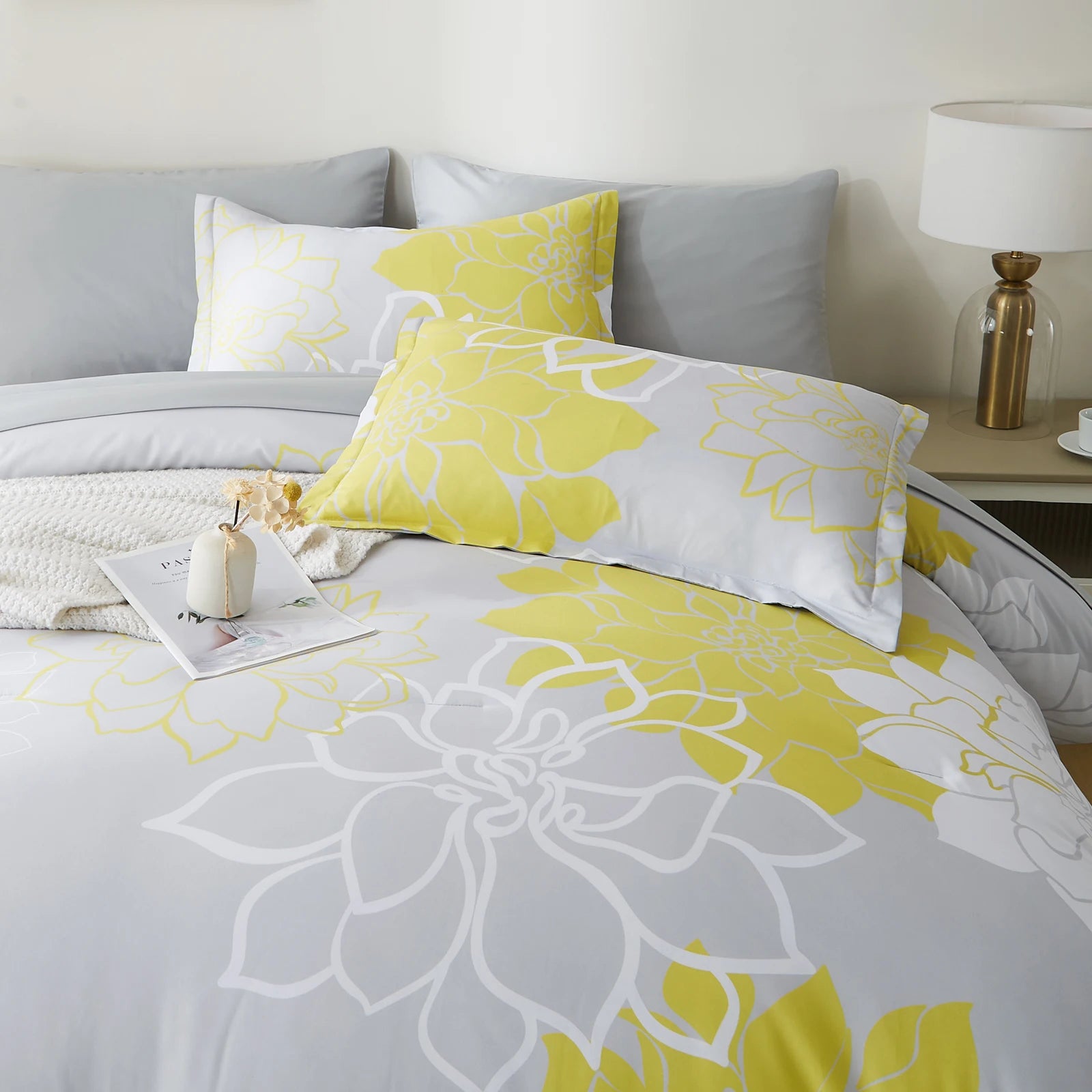 Comforter Set - 7 Pieces Floral Bedding Sets with Reversible Botanical Flowers Comforter, Sheets, Pillowcases & Shams