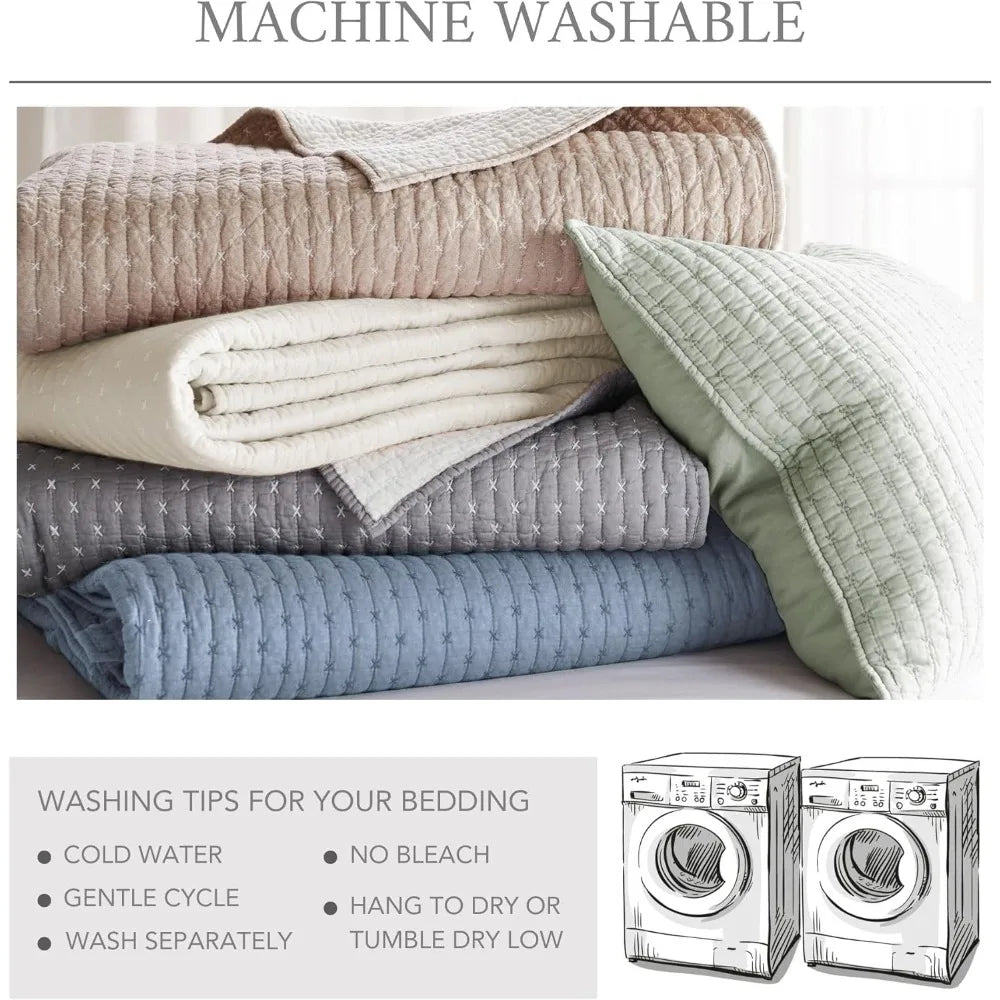 Cotton Cross Stitch Quilt Set - King Size (106x92 inches) with 2 Pillow Shams (36x20 inches) - Cream