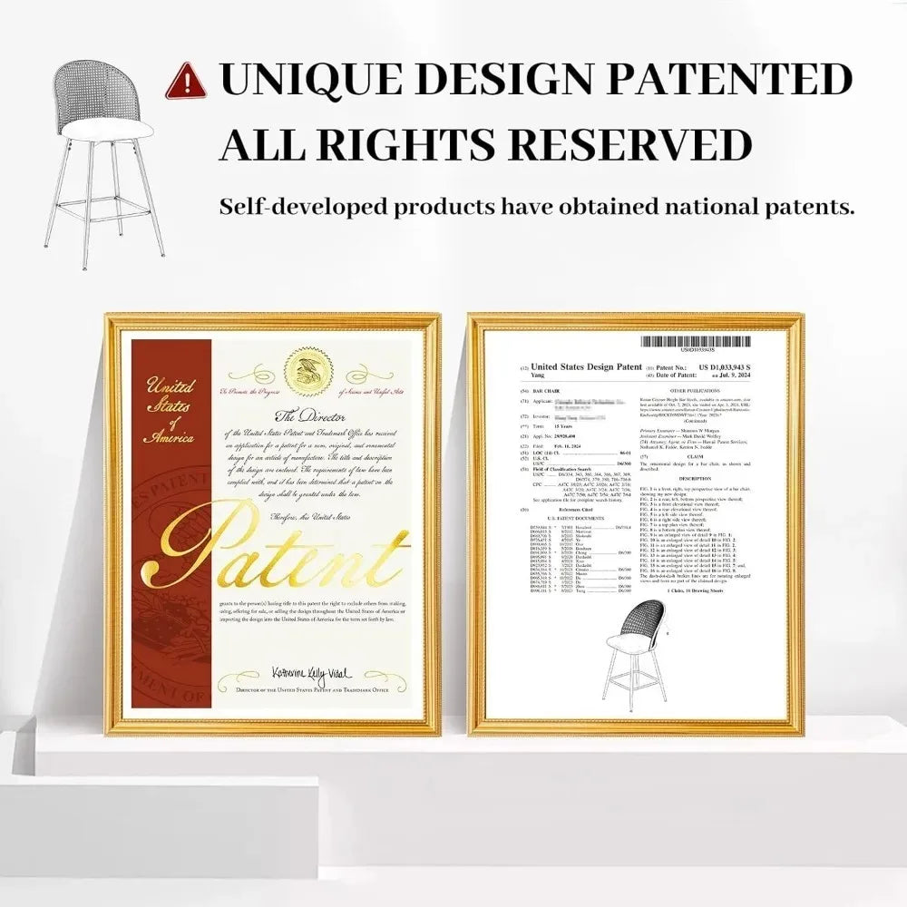 Counter Height Bar Stools Set of 2, 360° Swivel Upholstered Barstools with Rattan Full Back & Metal Legs, PU Leather 26" Mid