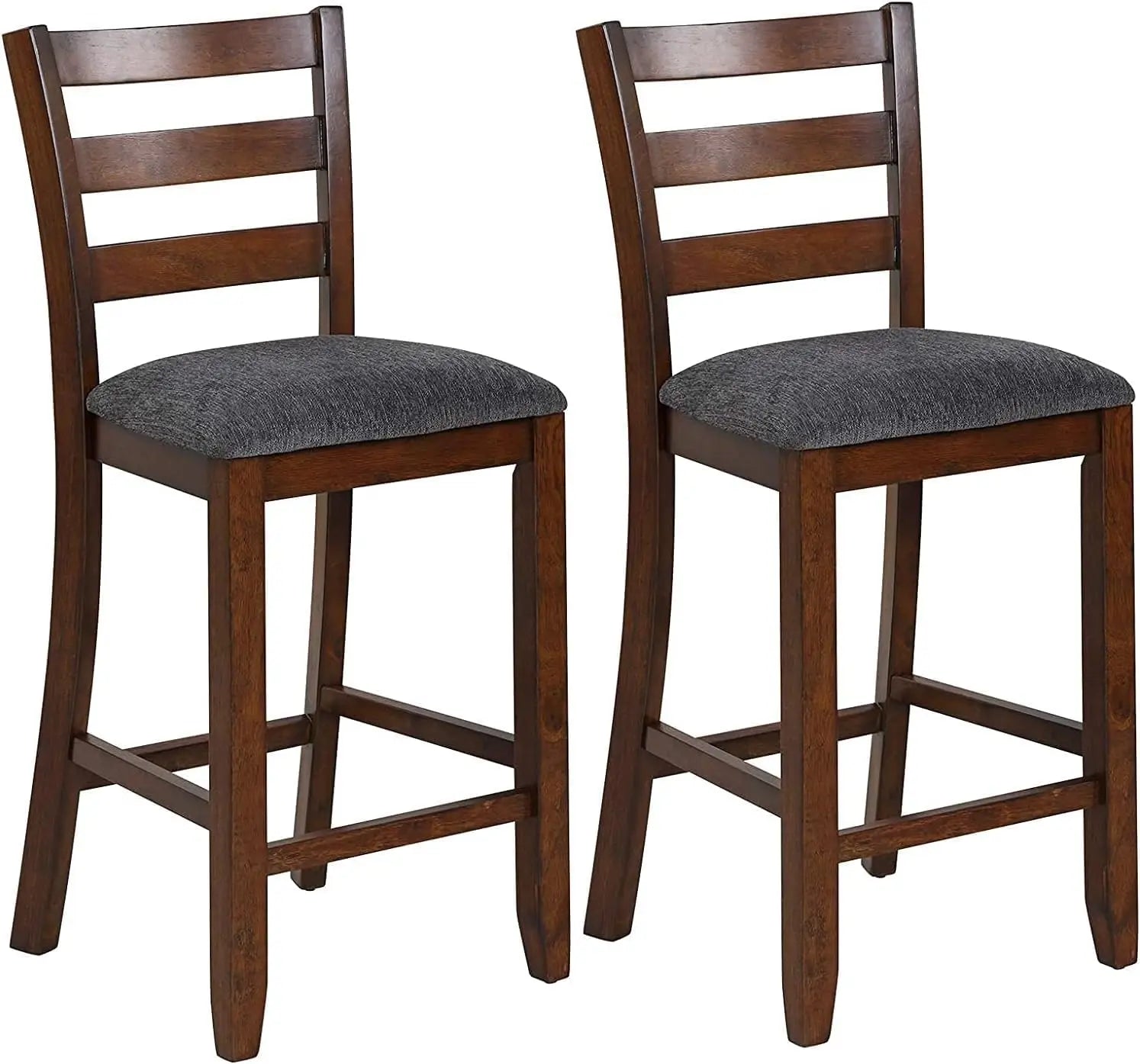 Counter Height Bar Stools Set of 2 Bar Stools Counter Stools with Back, Rubberwood Legs & Grey Fabric Cushion