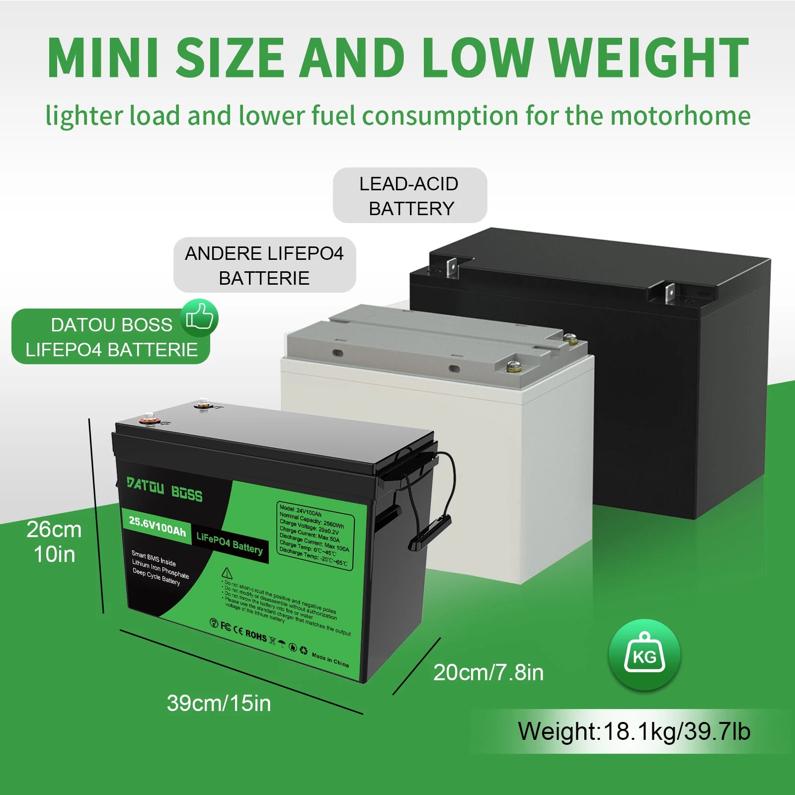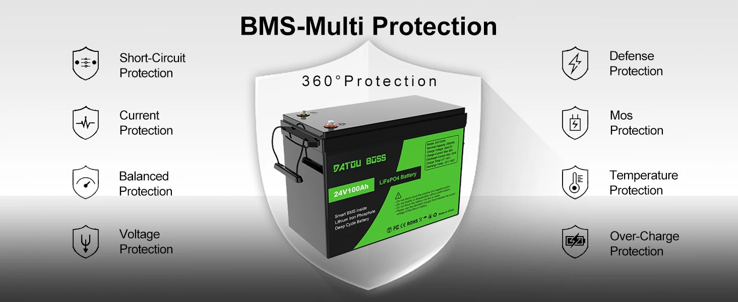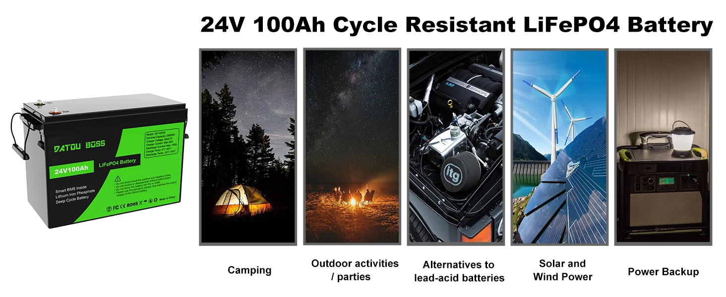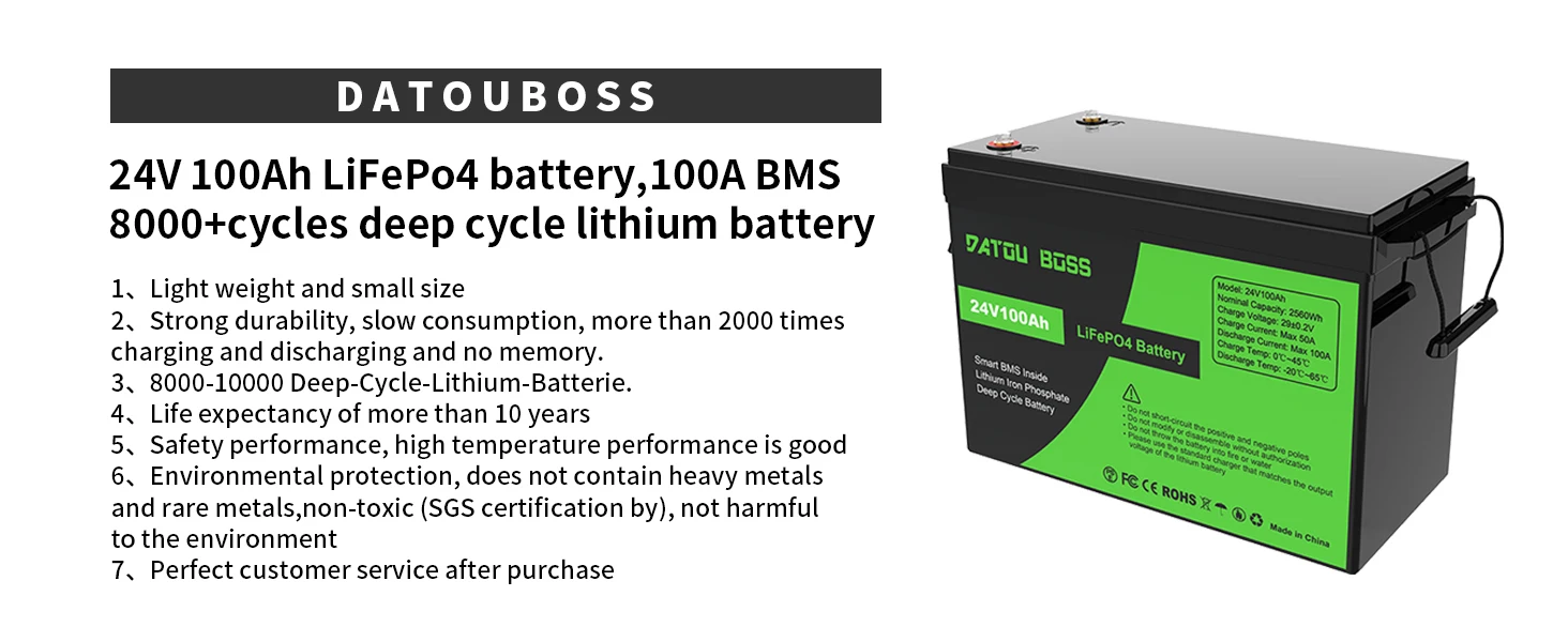 DATOUBOSS 24V 100Ah 2560Wh Lithium LiFePO4 Battery with 100A BMS Perfect for RV,Golf Cart,Solar Power System,Trolling Motor