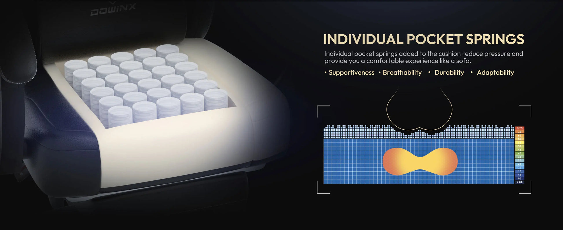 Dowinx Gaming Chair with Pocket Spring Cushion, Ergonomic Game Chair with Massage Lumbar Support and Footrest for Adults
