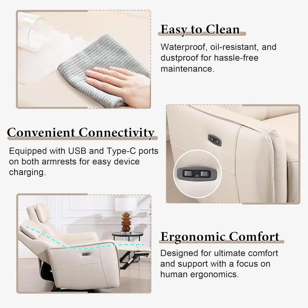 EBELLO Faux Leather Power Reclining Sofa Couch, Electric Recliner Loveseat Sofa with USB and Type-C Charging Ports, Metal Base,