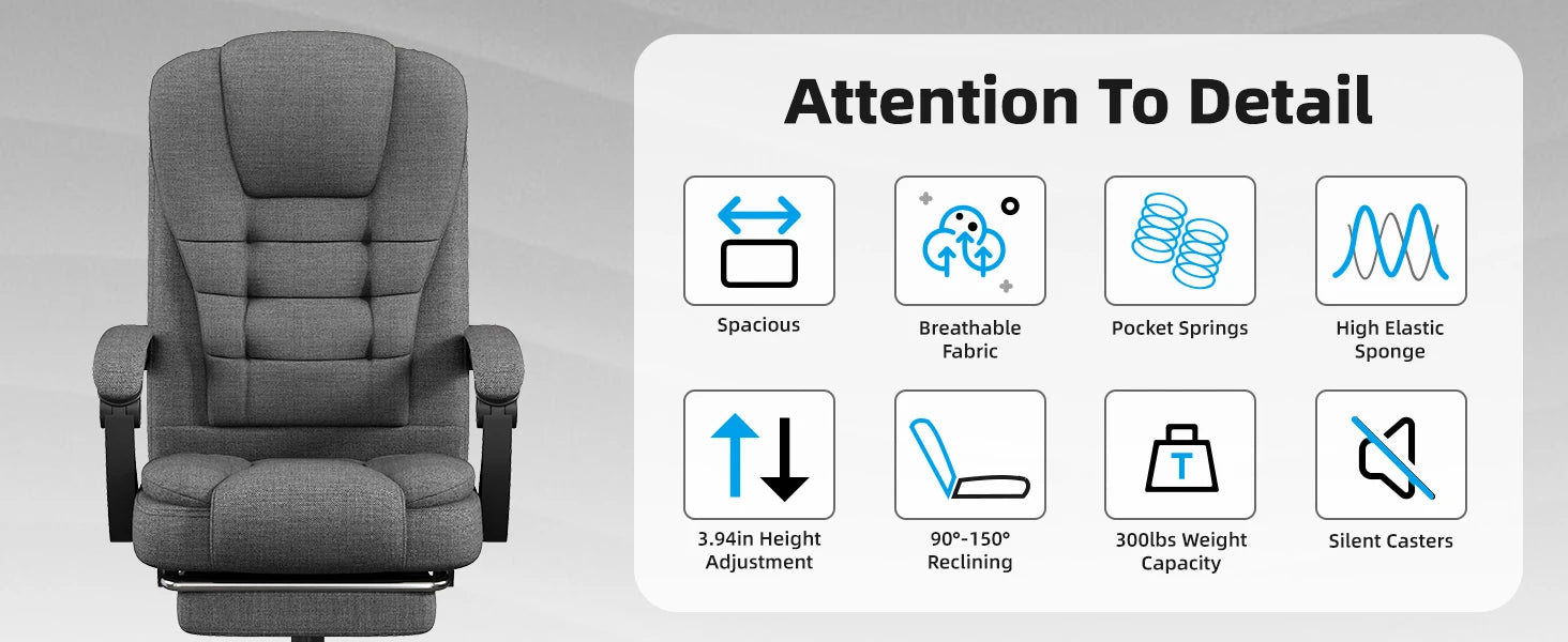 Ergonomic Executive Office Chair - High Back Chair with Headrest & Lumbar Support, Premium Home Office Chair - Adjustable Height