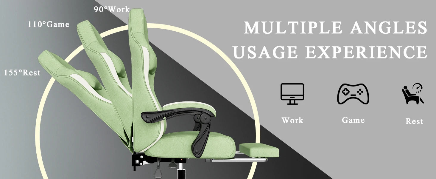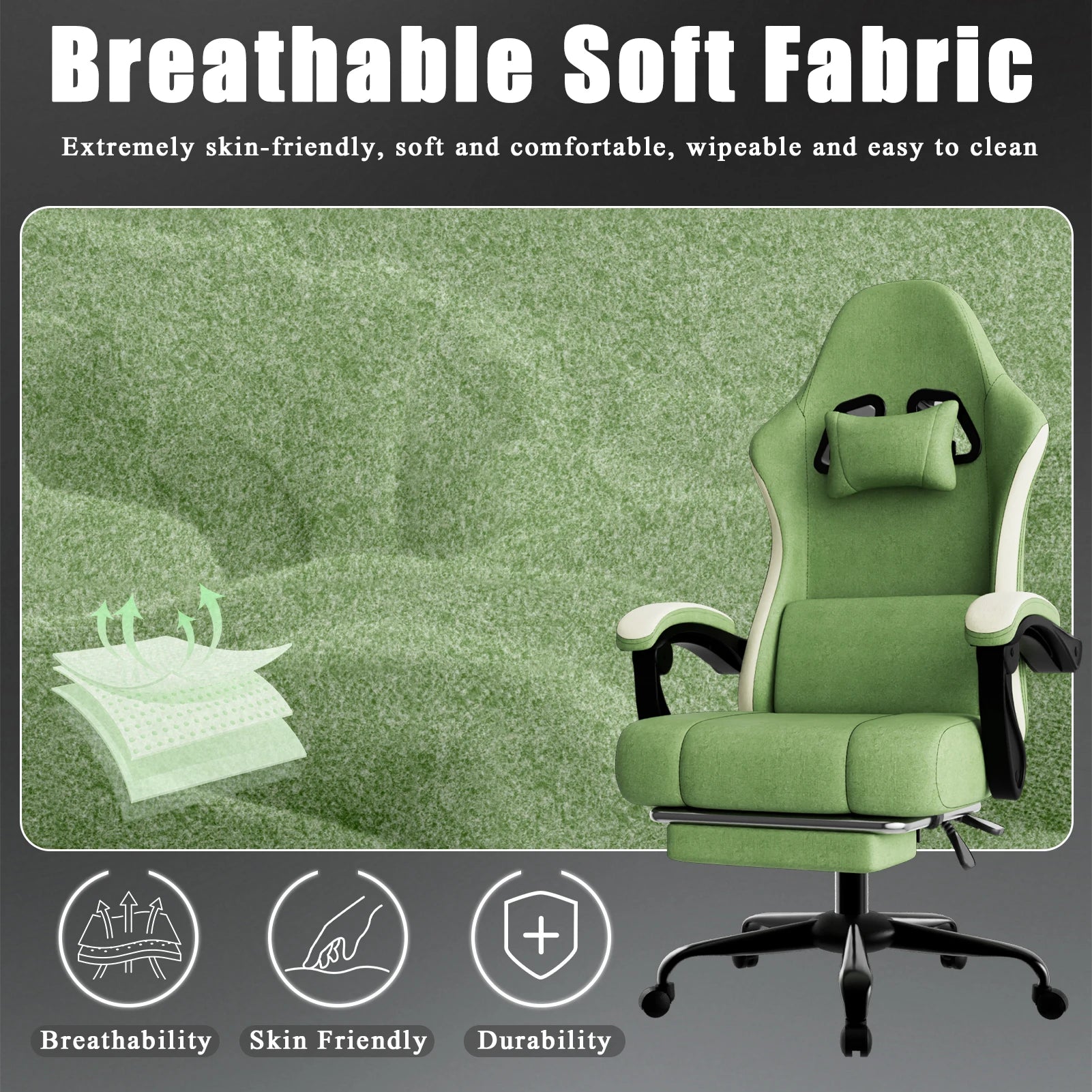 Ergonomic Gaming Chair with Pocketed Spring Cushion, Breathable Fabric Computer Chair with Footrest, Adjustable Lumbar Support V