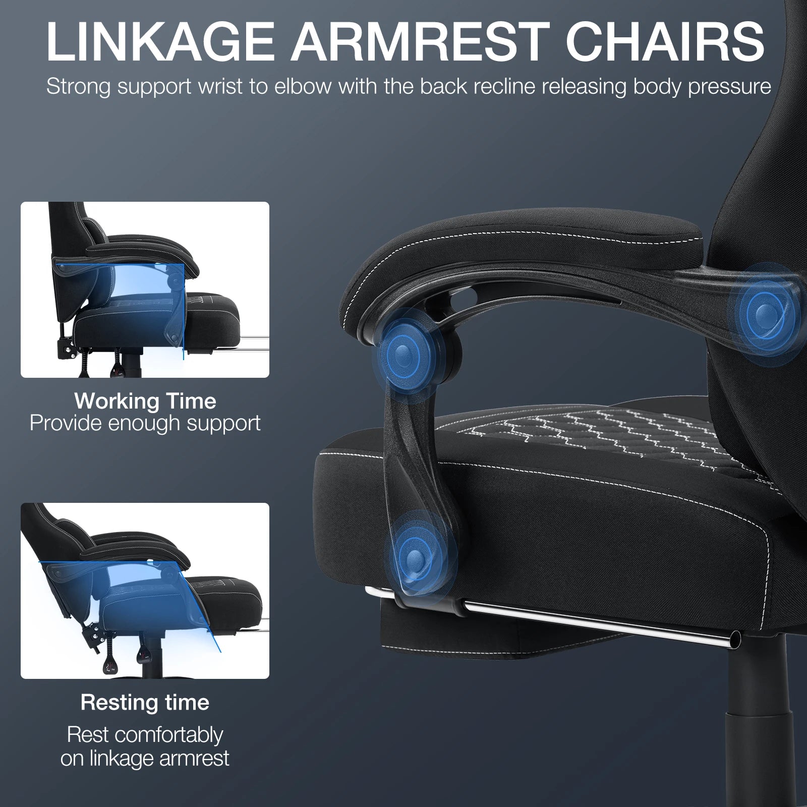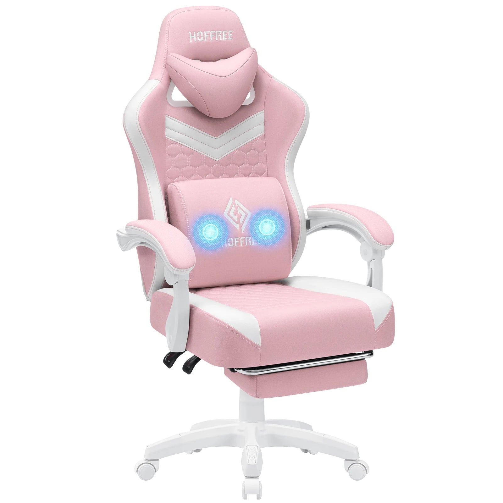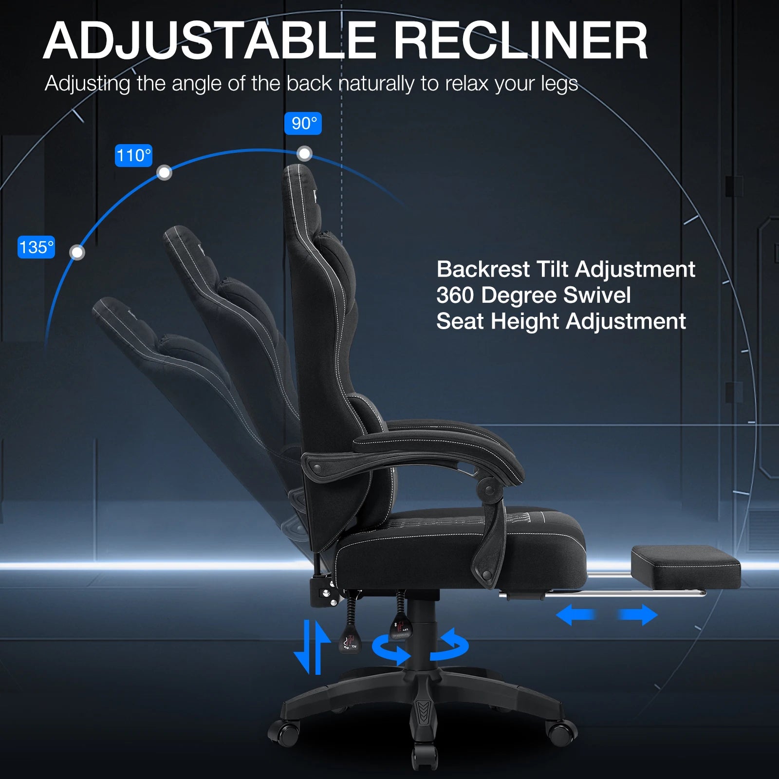 Ergonomic Office Chair With Footrest Lumbar Cushion Bluetooth Speaker 2-Point Massage Height Adjustable Gaming Racing Chair Sofa