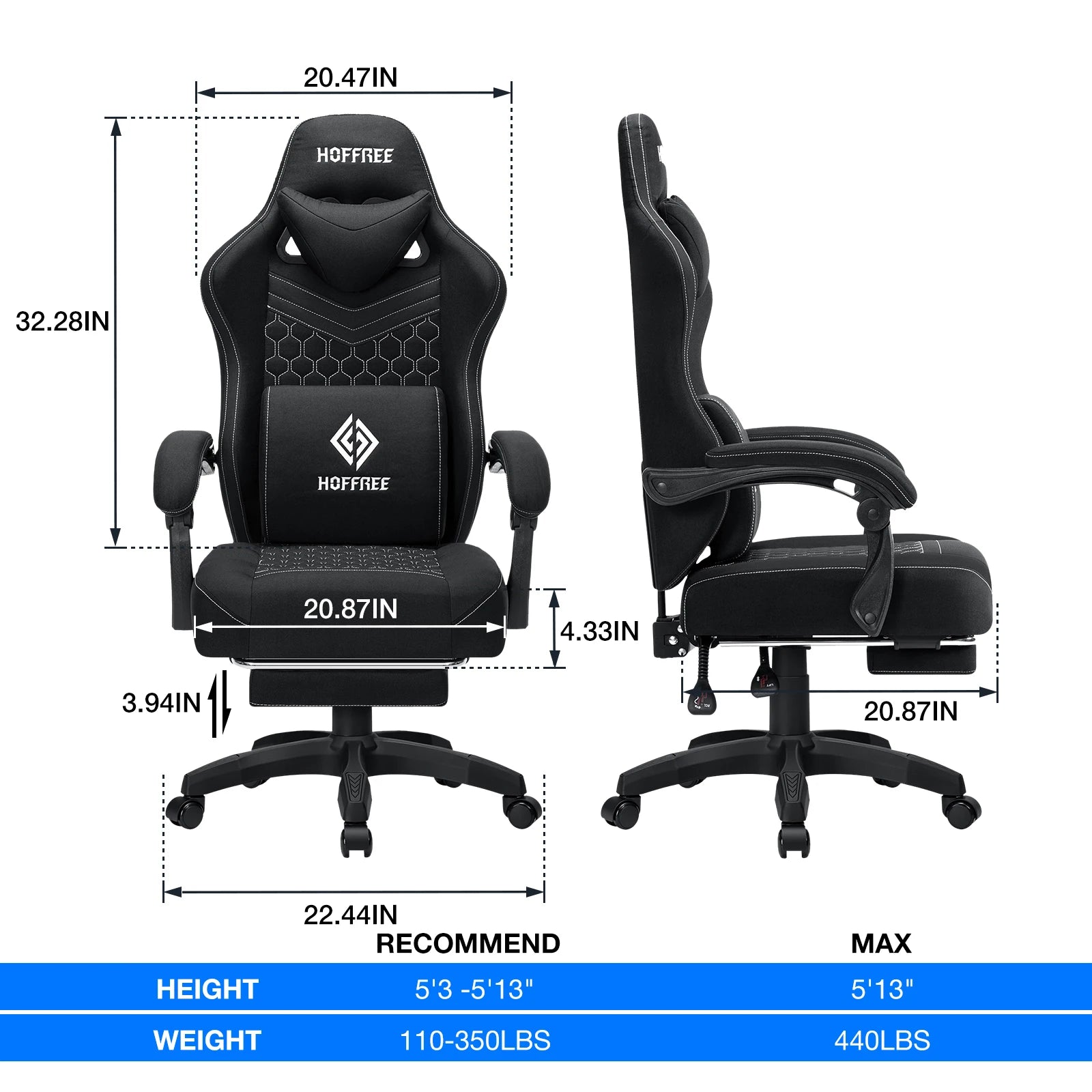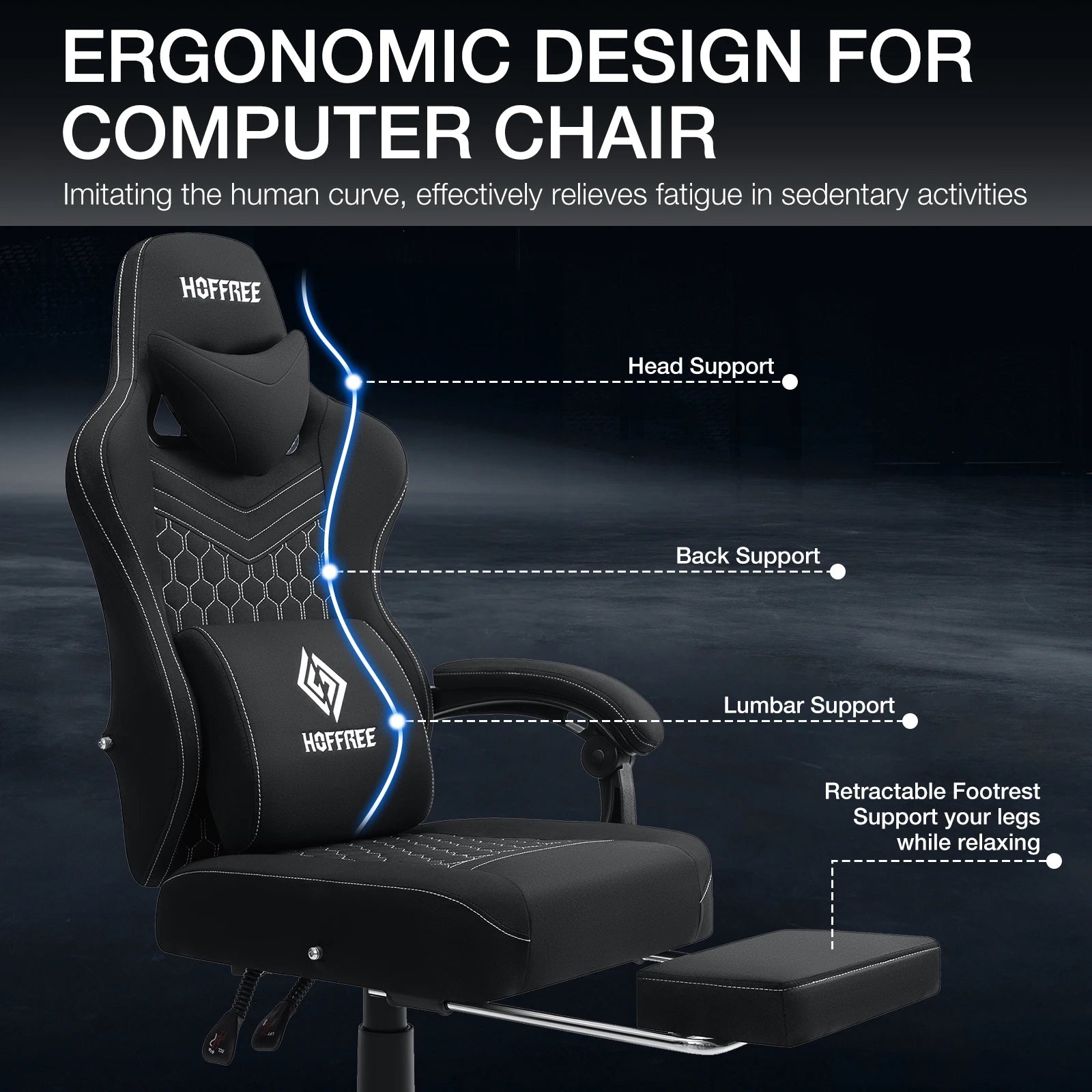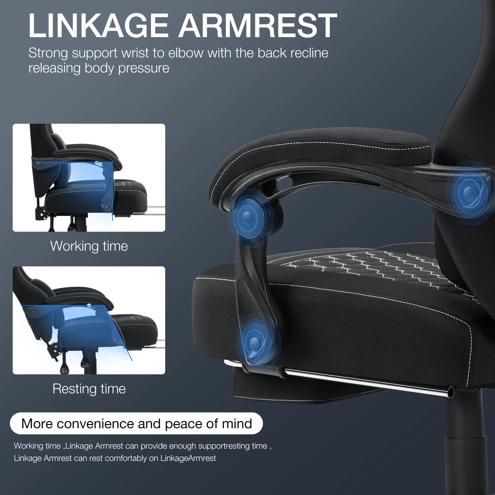 Ergonomic Office Chair With Footrest Lumbar Cushion Bluetooth Speaker 2-Point Massage Height Adjustable Gaming Racing Chair Sofa