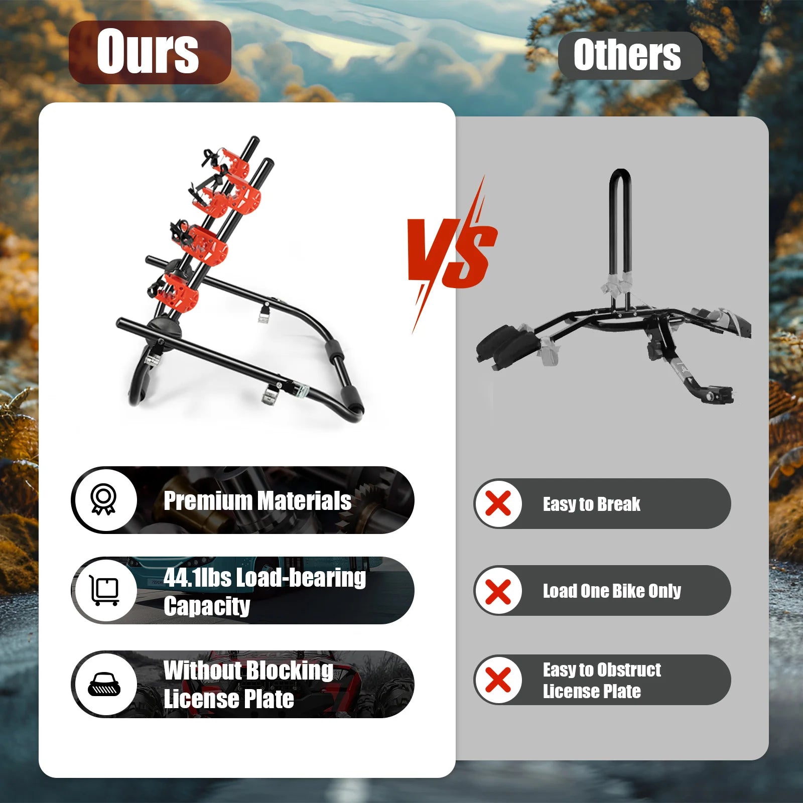 Foldable Car Trunk Bike Rack Auto Bicycle Rack Carrier 3 Bikes Trunk Mount for Most Hatchbacks, Sedans, SUVs, Vans