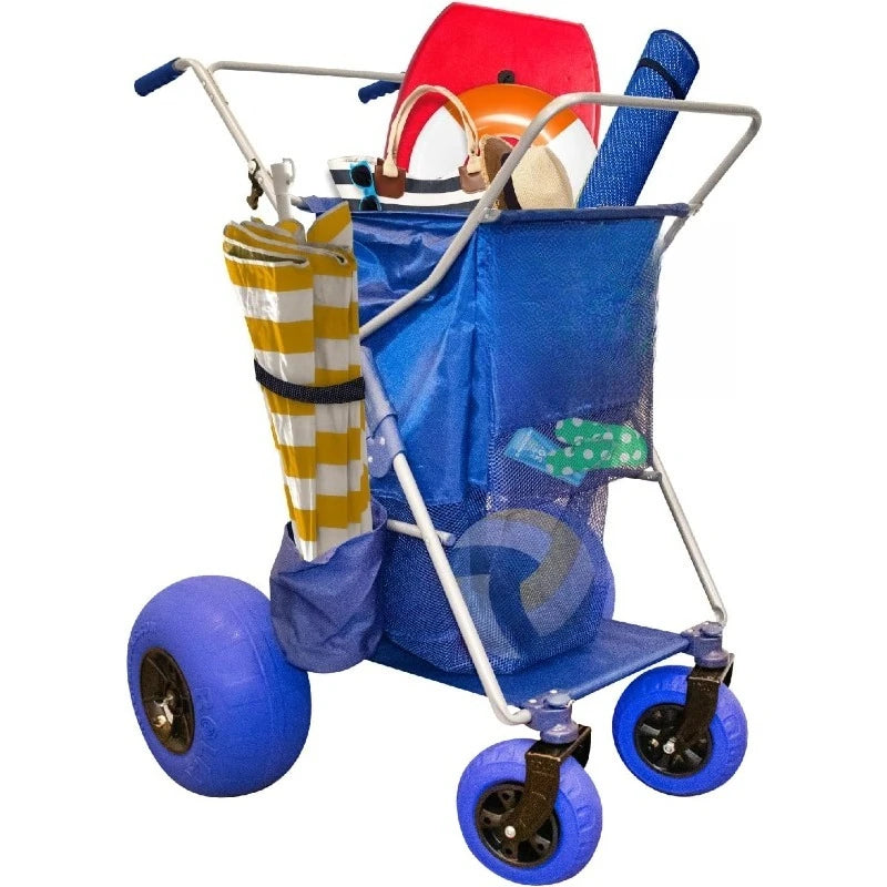 Foldable Storage Wagon with 4 Balloon Wheels, Rear 13 Inch & Front 7 Inch Beach Tires (Pump Included) - Blue