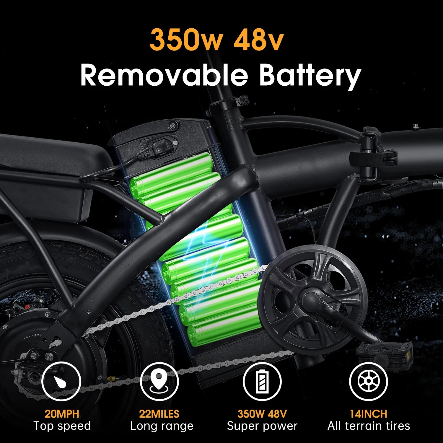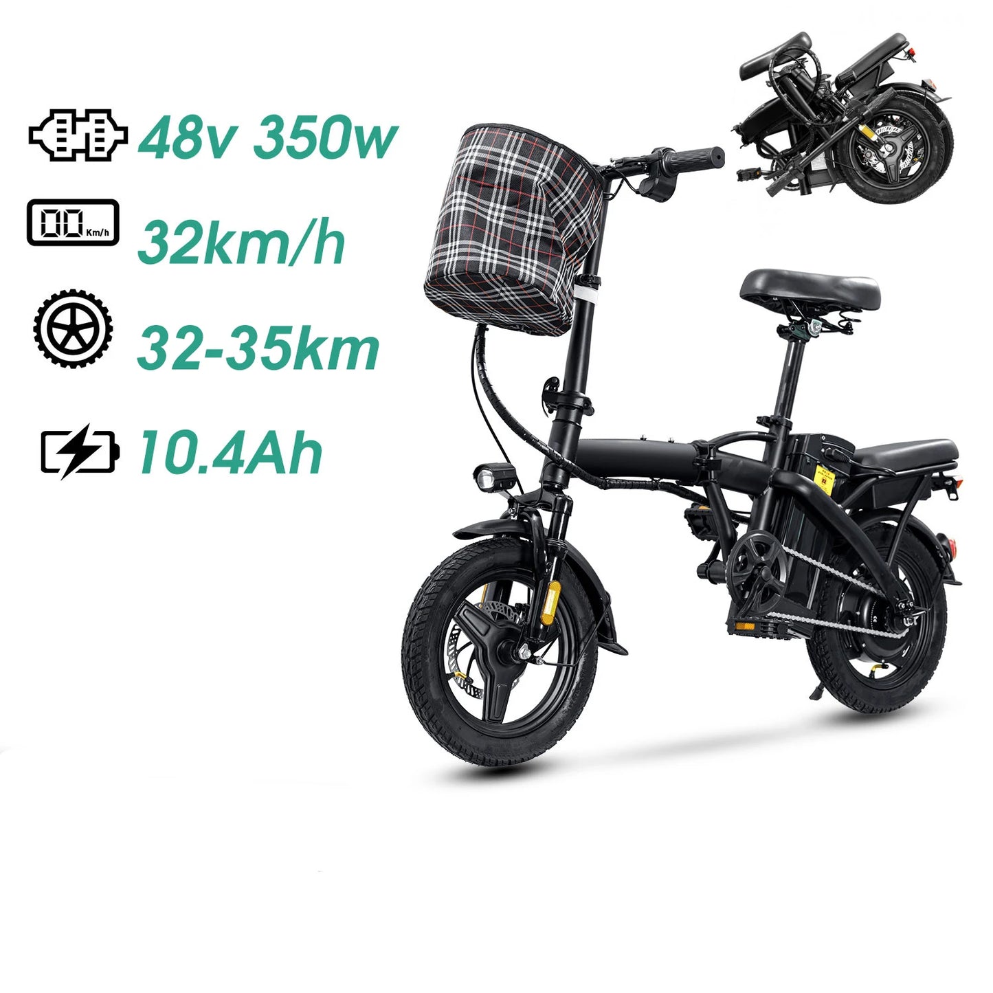 Folding Electric Bike for Adult With Basket 350W Foldable Electric Bicycle 48V 10.4AH Commuting Lightweight Cycling Escooter