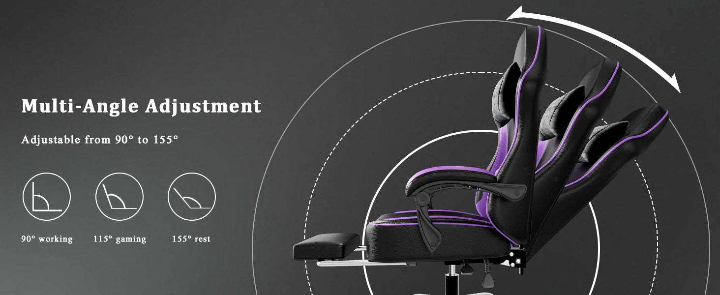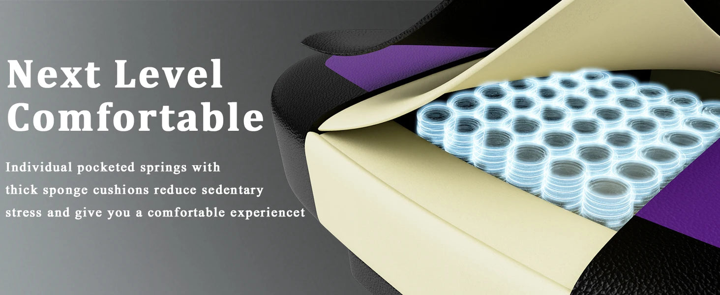 Gaming Chair with Pocket Spring Cushion and Footrest, Ergonomic Computer Chair for Adults, Breathable PU Leather Game Chair, Adj