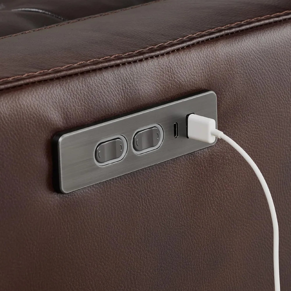 Genuine Leather Power Swivel Glider Rocker Recliner, FSC Certified Mid Century Modern Recliner Chair for Adults, Adjustable Pow