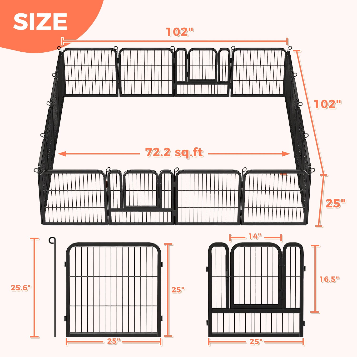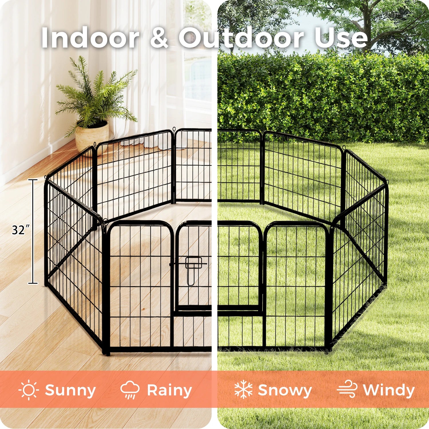Heavy-Duty Metal Puppy Playpen – 24"/32"/40" Options, 8/16 Panels, Ideal for Indoor Use & Outdoor (RV Camping, Yard, Garden)