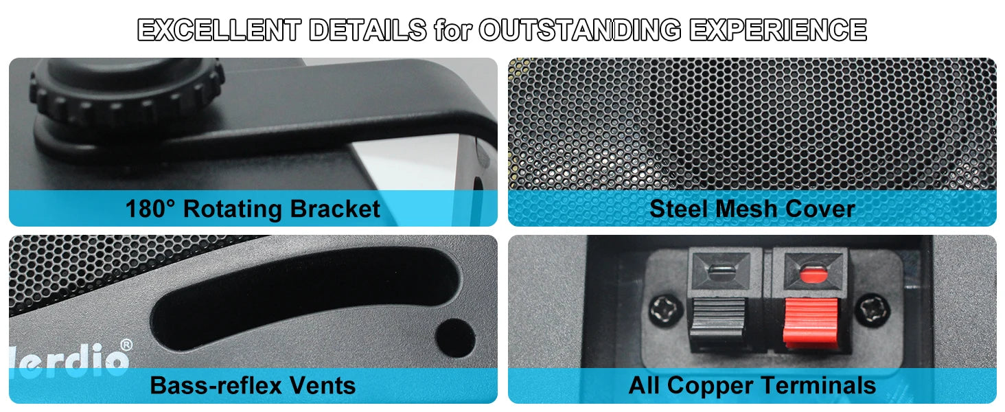 Herdio 3.5'' Passive Outdoor Speakers Wired Waterproof 200W 3 Way Premium Mountable Wall Mount Speakers For Patio Marine Boat