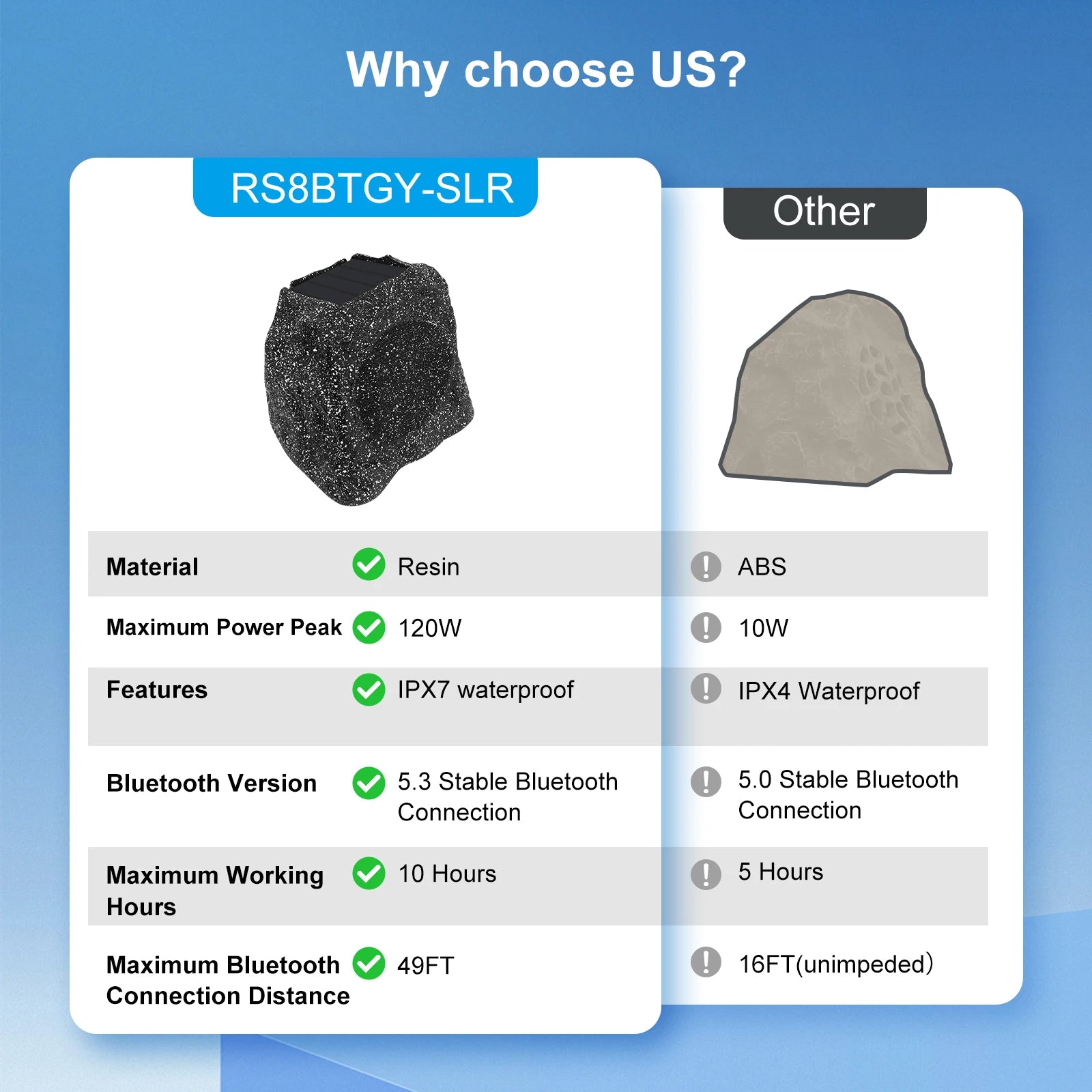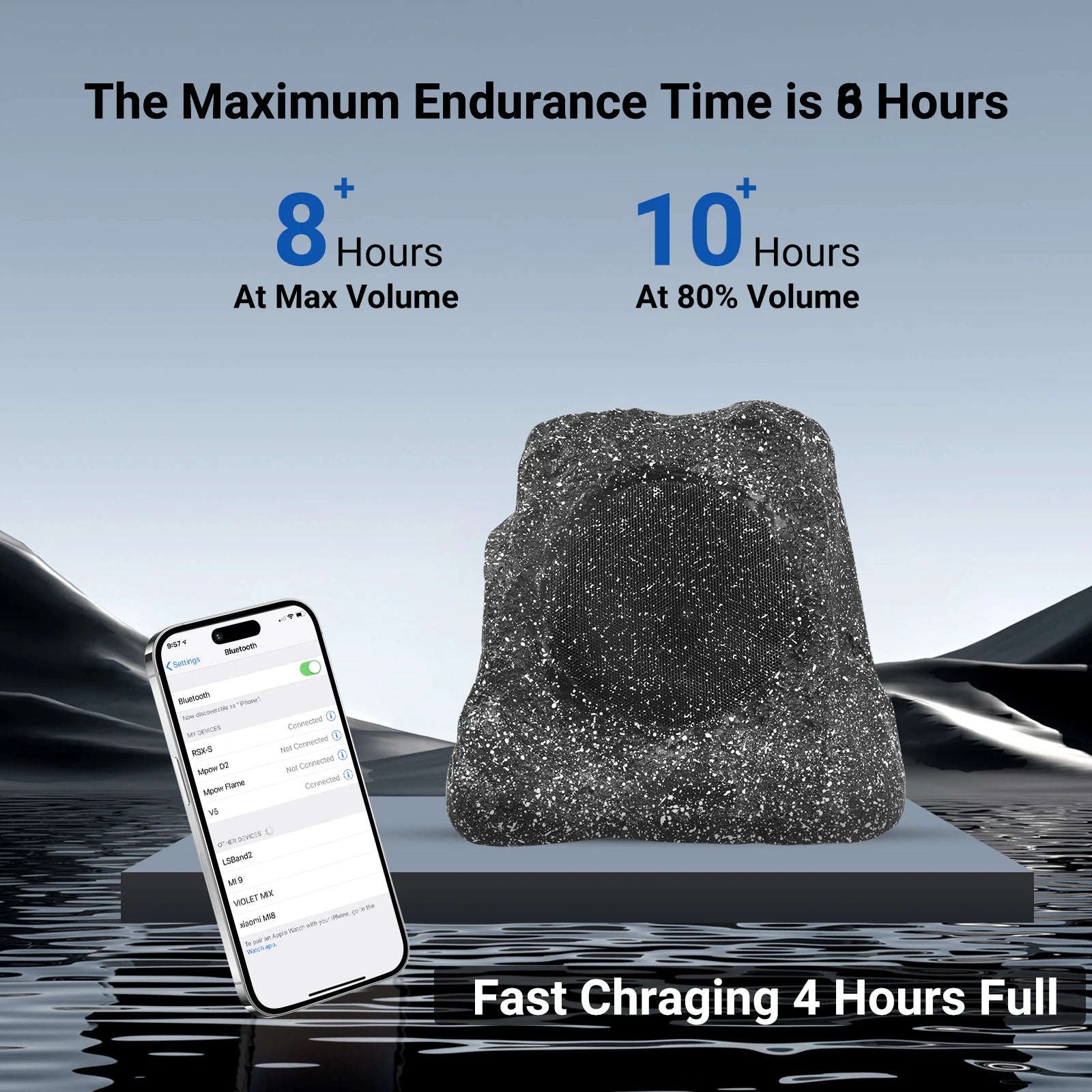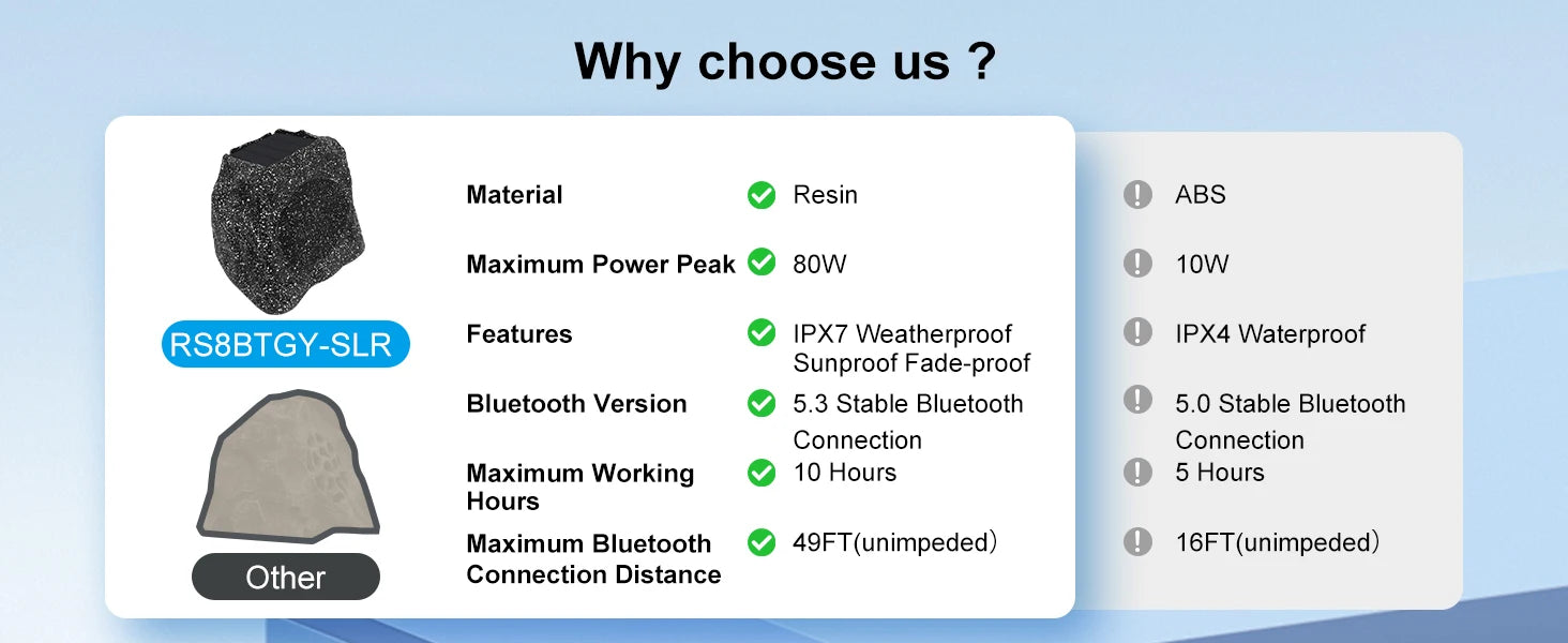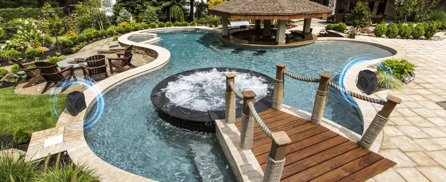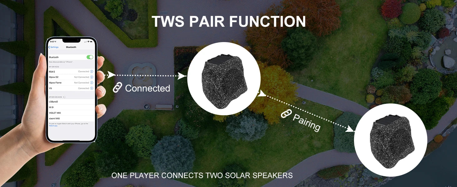 Herdio 8" Rock Bluetooth Speakers Outdoor Waterproof IPX7 Wireless Solar 240W TWS Connection Powered With Rechargeable Battery