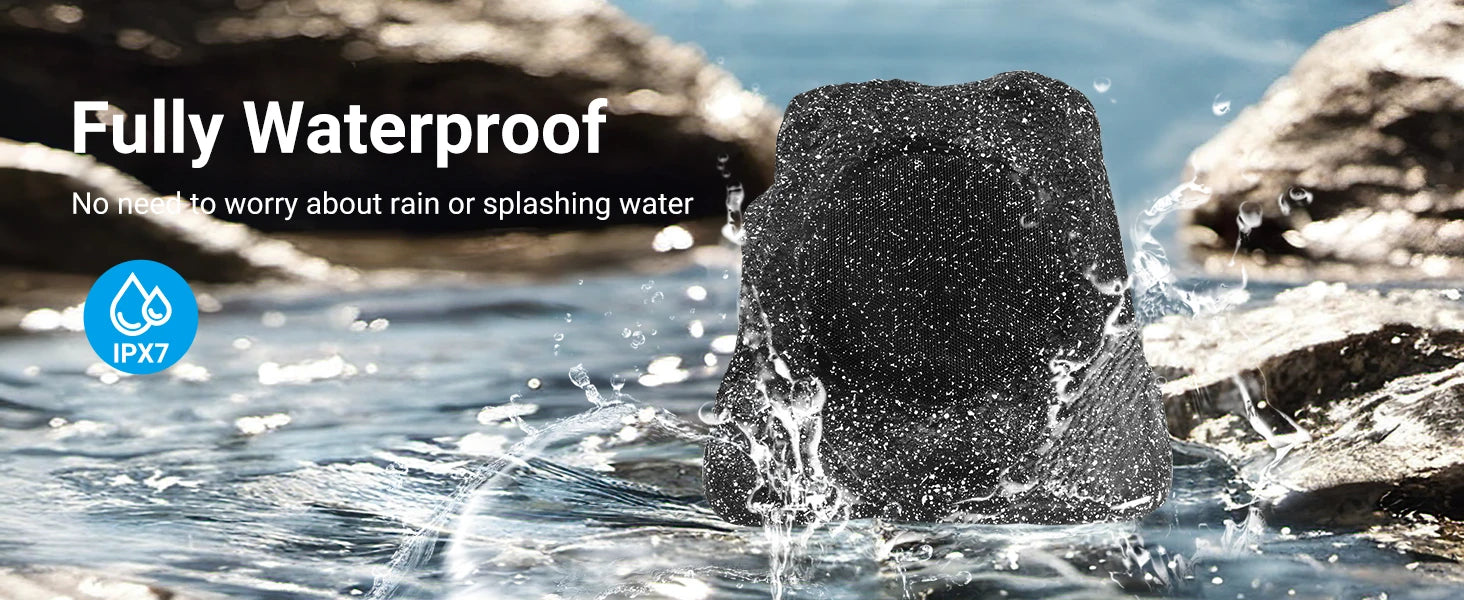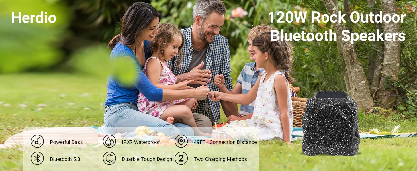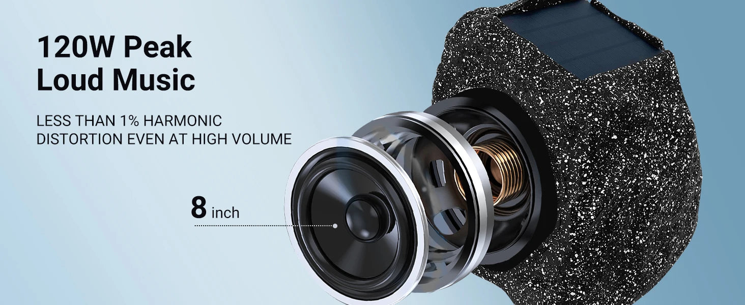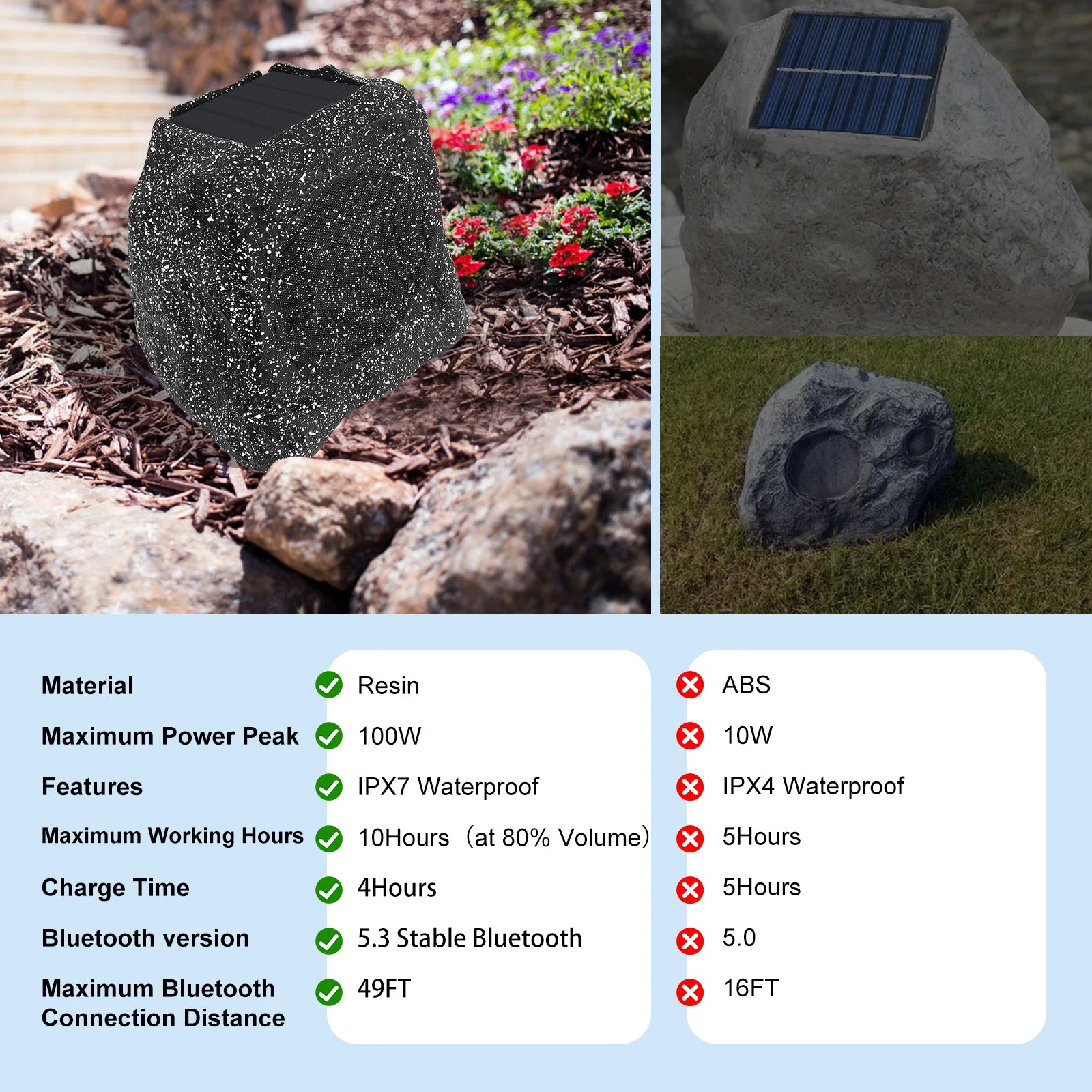 Herdio 8" Rock Speakers Outdoor IPX7 Waterproof Bluetooth Wireless Solar Powered Max 120W With Rechargeable Battery For Garden