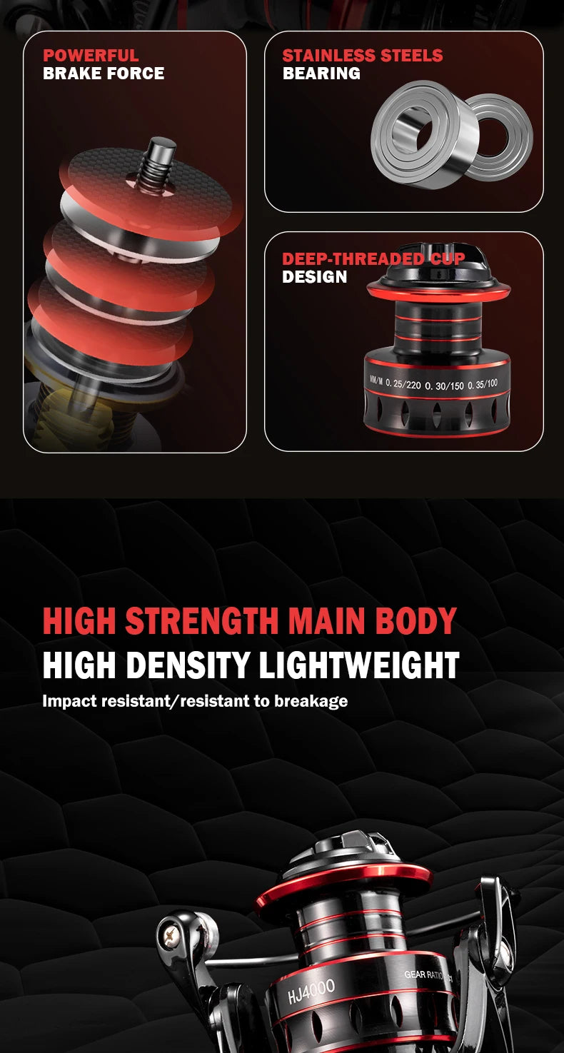 HJ Fishing Reel Spinning Reel Metal Reel Cup 10KG Max Drag Power Spinning Wheel High Speed Adapt to Any Water Body
